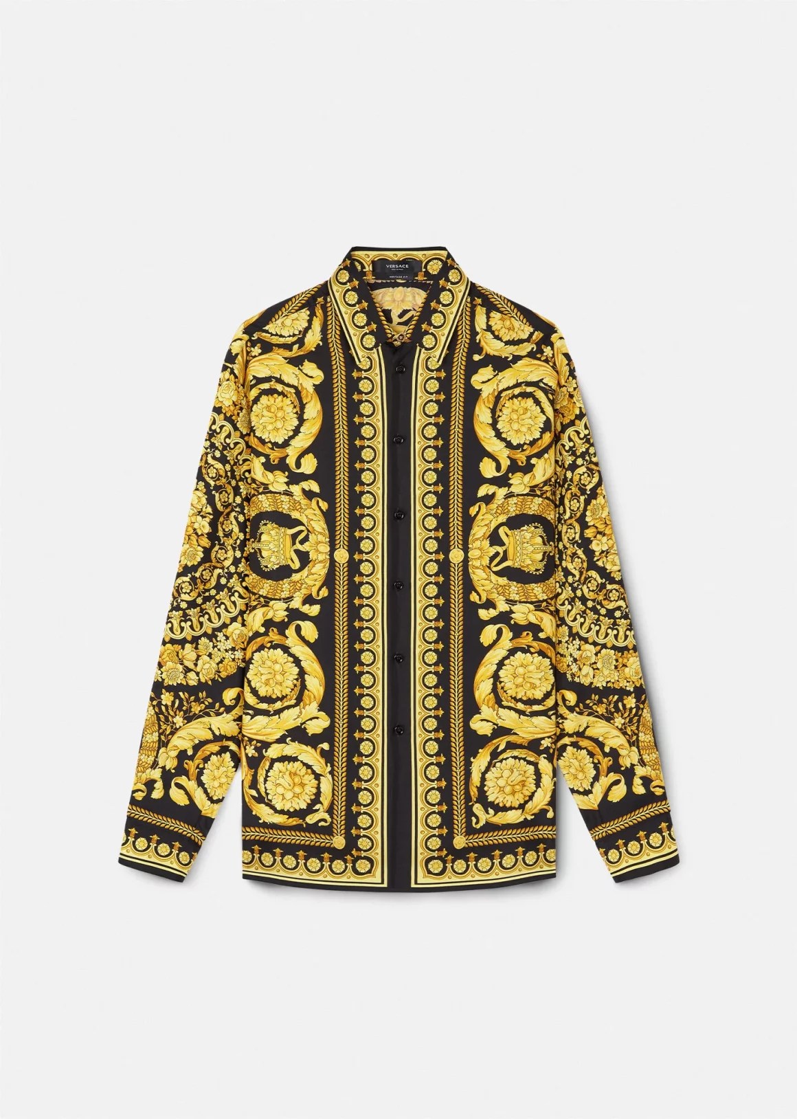 Get the look: $1,825 Versace Barocco Silk Shirt
