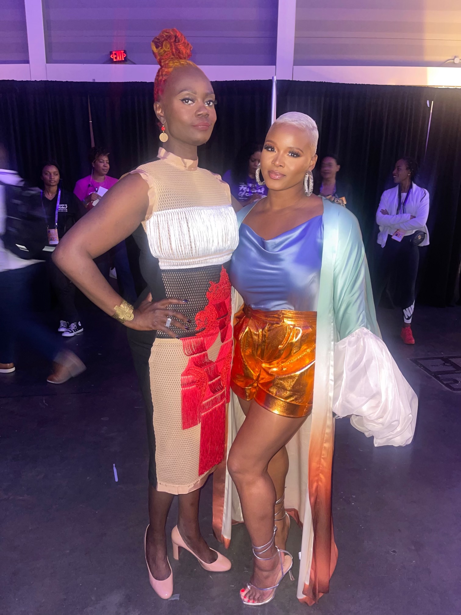 Monique wore a look by Fendi, Letoya was pretty in pink Bronx and Banco, and I wore a Fe Noel robe, Kimberly Goldson shorts, and Brother Vellies sandals (I wore all black female designers for Day 1).