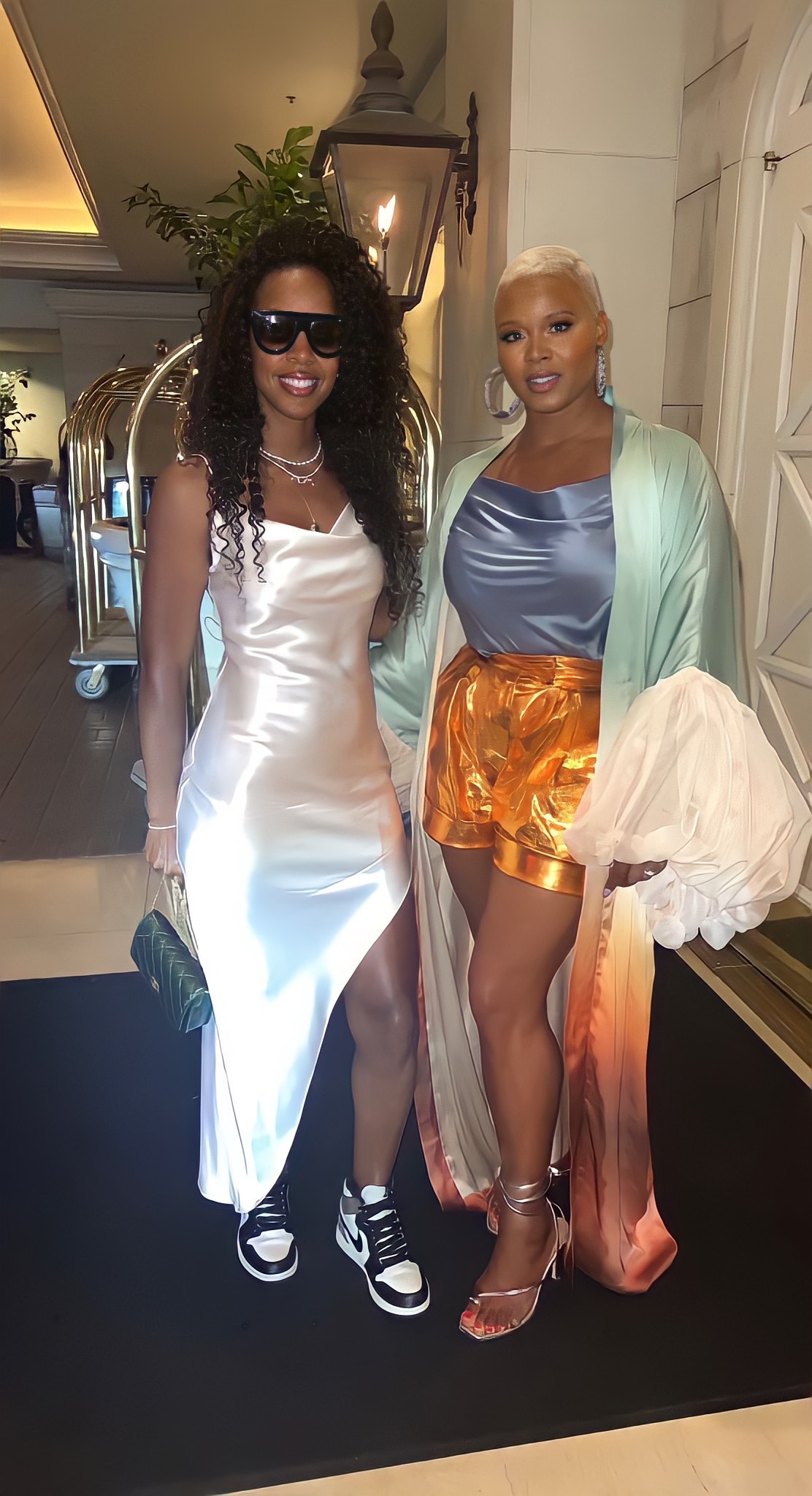 Essence is always better with friends! This chic duo played with masculine and feminine penchants, with @ThatSlim _Nurse in a relaxing maxi, and her friend in shorts and sneakers.