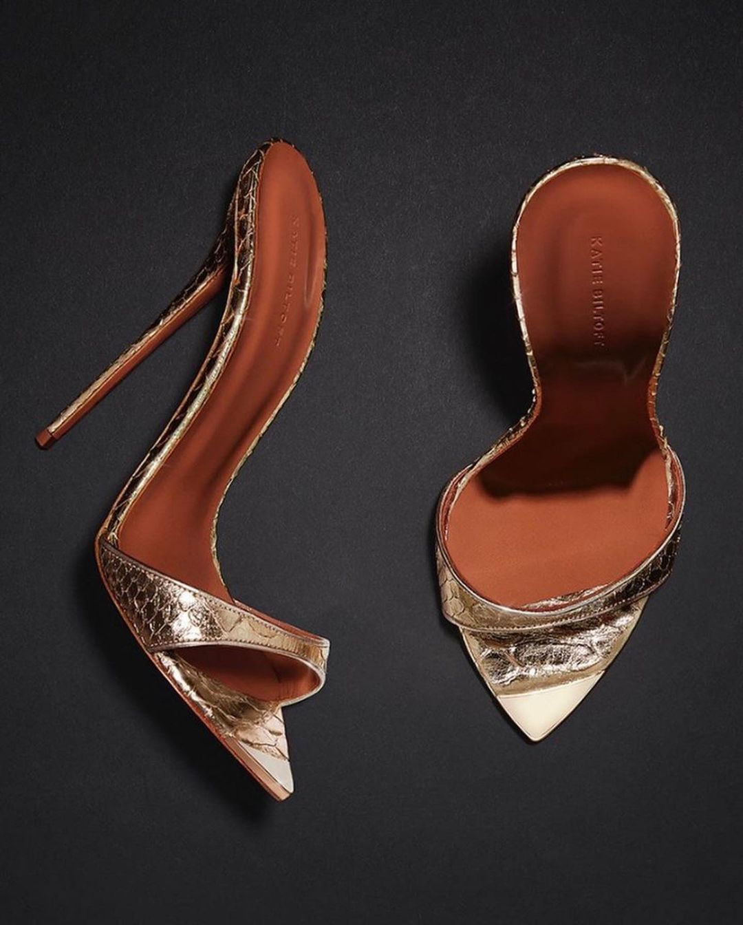 The latest campaign for Skims is promoting a swimwear line that is all about that shiny gold, silver and bronze lamé fabric that screams 80s glam. Fittingly so, Kim Kardashian shared photos to her instagram revealing pieces from the collection and the retro vibes surrounding them! She posed poolside in a gold bikini, but we had to stop and take a moment to appreciate the Katie Biltoft ‘Lucre’ sandals in color ‘Aurum’ that she wore to go with the swimsuit.