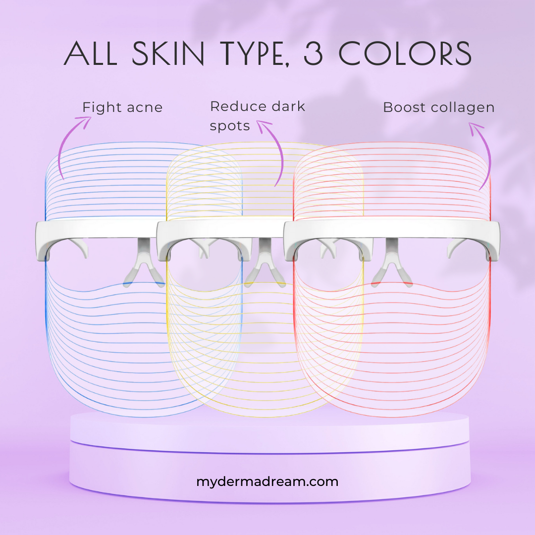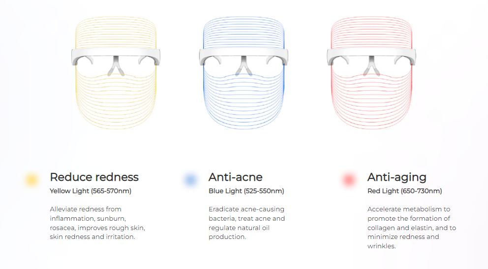 The lightweight LED mask includes a choice of three lights.