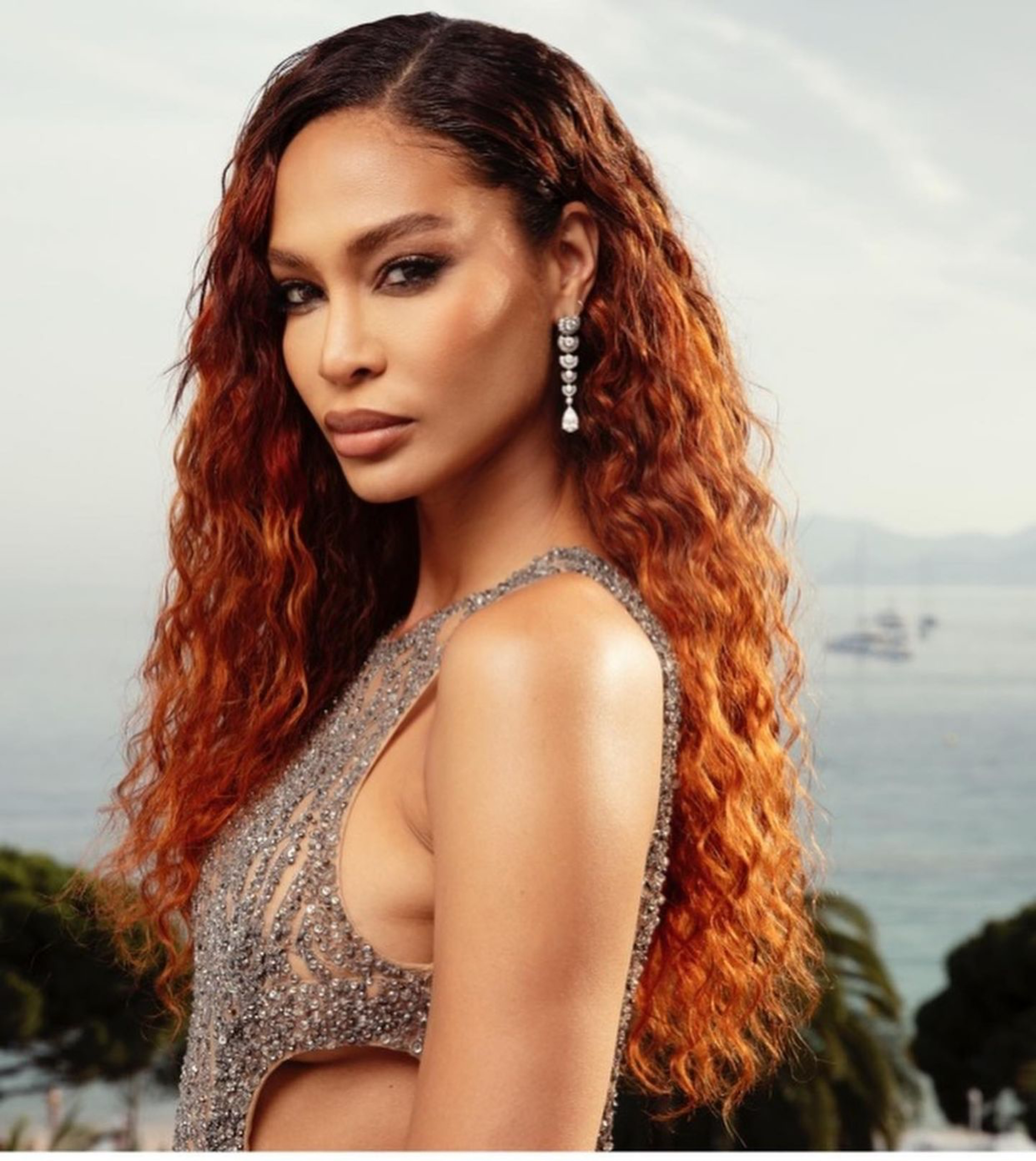 Hairstylist Hos Hounkpatin struck gold again with model Joan Smalls, slaying her curly, auburn tinged Indique Hair tresses for the Amfar gala.