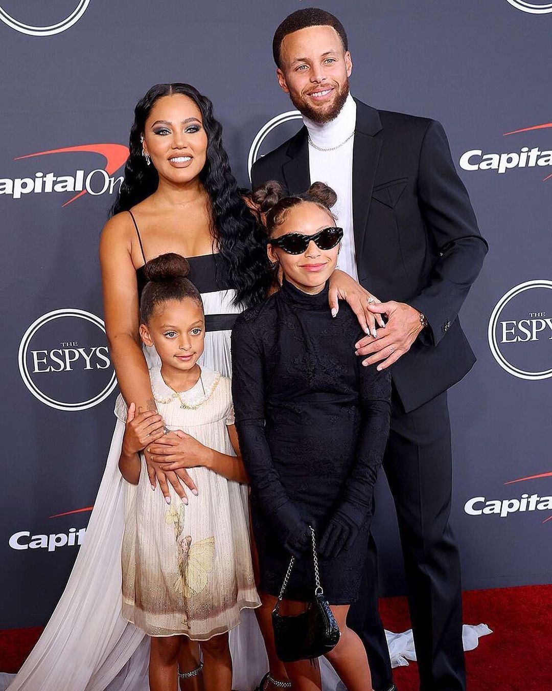 Stephen and his beautiful family made their arrival in color coordinated looks reflecting each of their personal styles! With the help of stylist to the stars Jason Bolden, Steph wore full Bottega Veneta for all of his outfits throughout the night. Riley Curry had her fashionable red carpet moment in a Balenciaga dress complete with gloves and shades!
