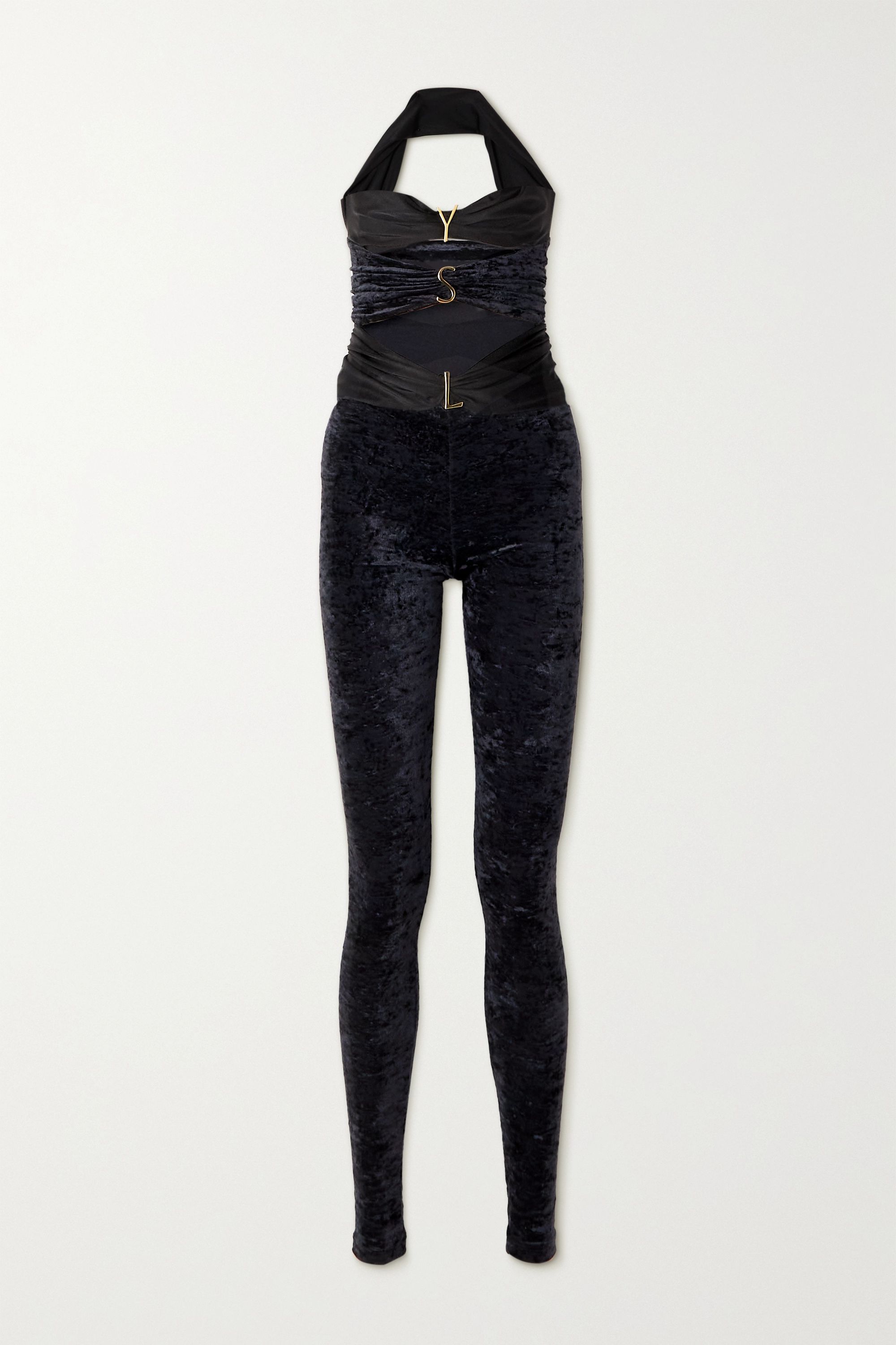 Get the look: $3,410 Saint Laurent Embellished Cutout Satin and Velvet Jumpsuit