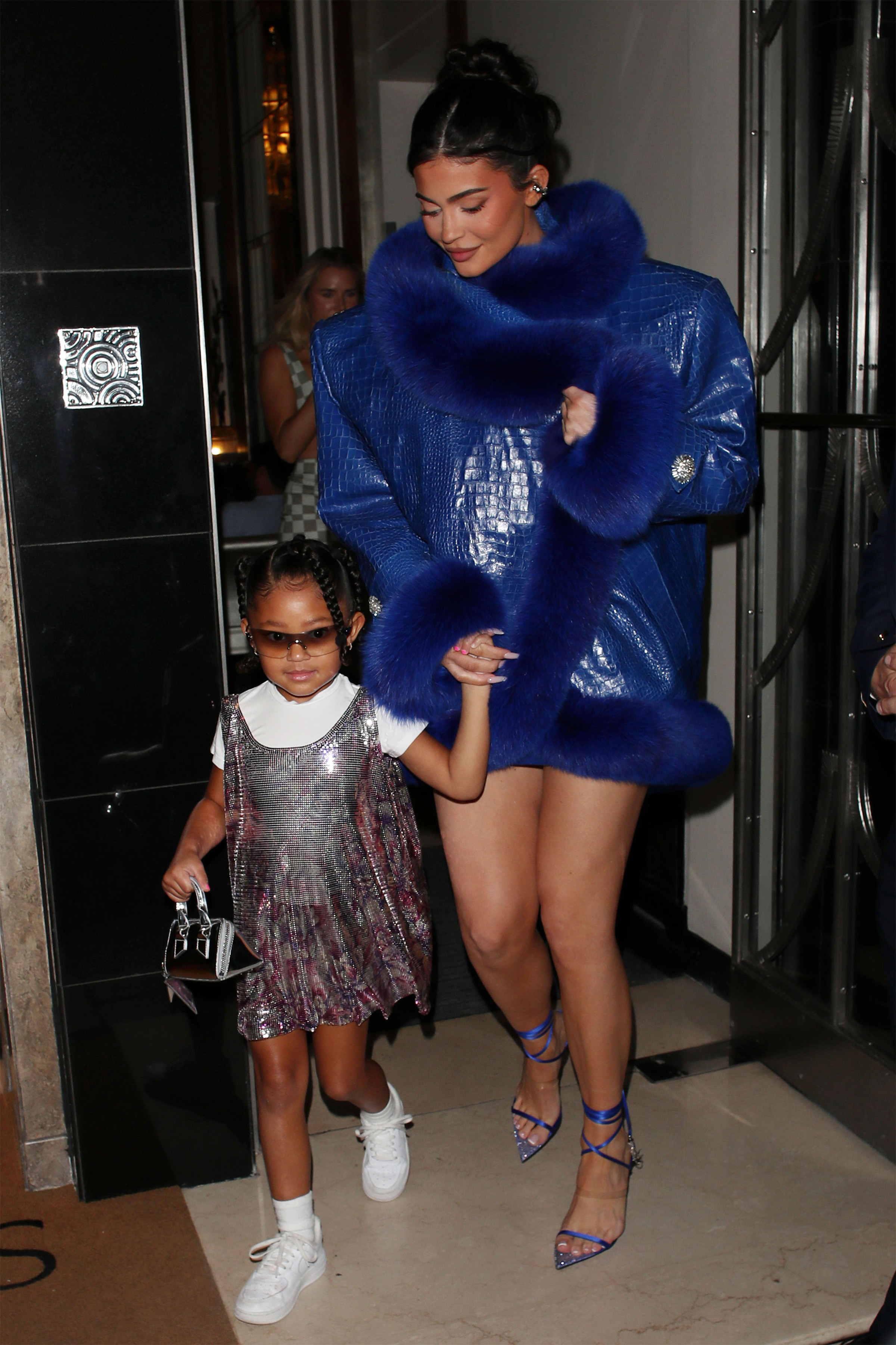 LONDON, ENGLAND – AUGUST 04: Kylie Jenner, Stormi Webster and Travis Scott are seen having dinner at Nobu Portman Square on August 04, 2022 in London, England. (Photo by Ricky Vigil M/GC Images)