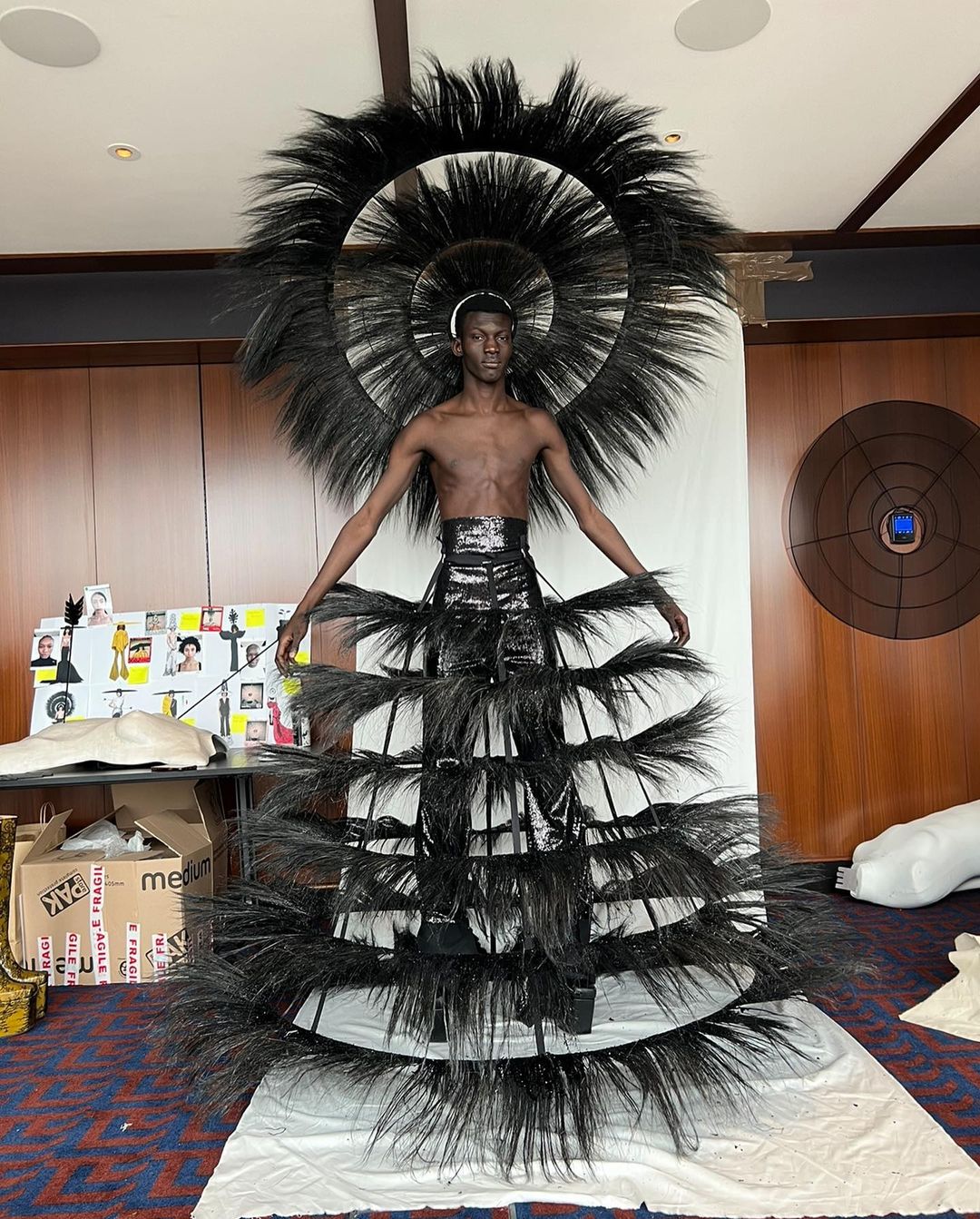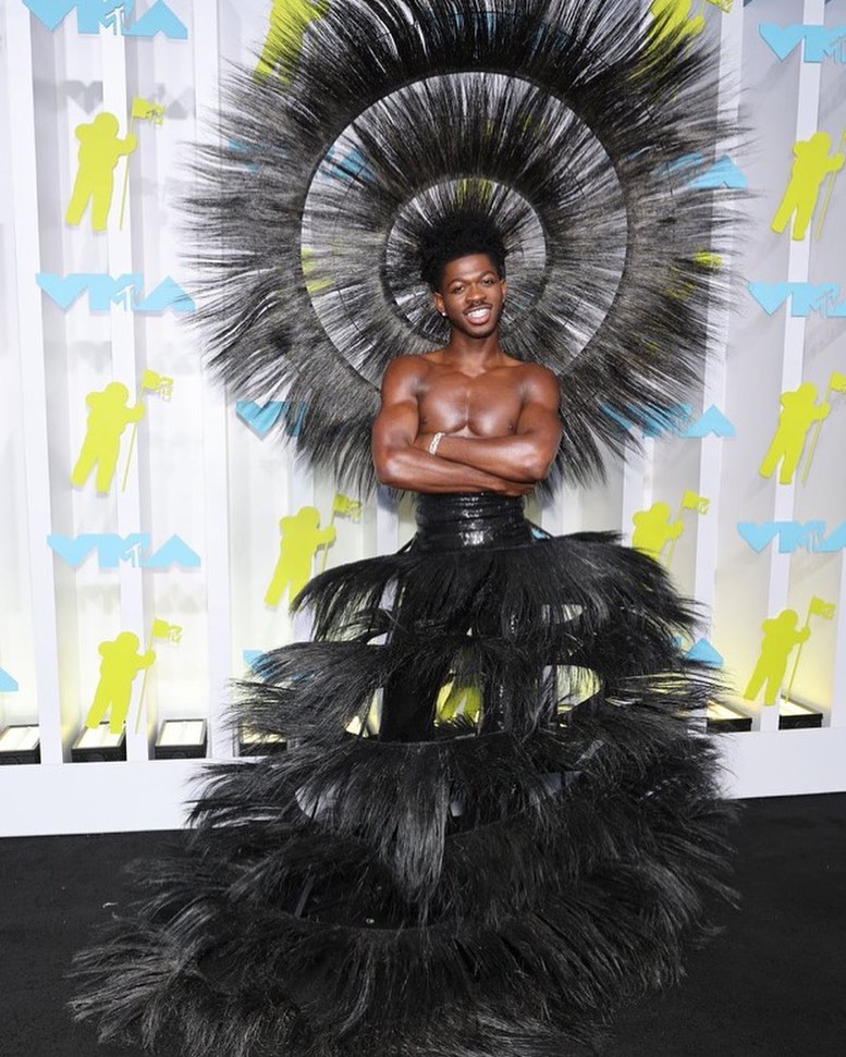 Lil Nas X came through in Look 8 from Harris Reed’s ’60 Years A Queen’ collection. The feathery masterpiece and sequins pants were selected by stylist Hodo Musa who engineered this fashion moment!