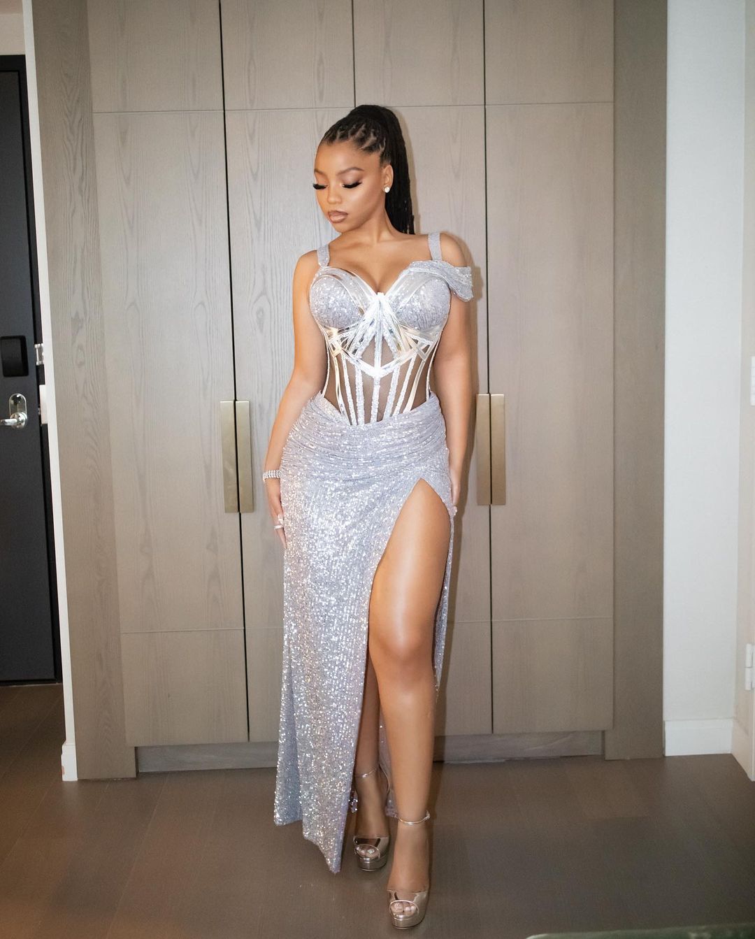 Looking like an intergallactic goddess, Chloe Bailey was unmatched in a custom Zigman gown for the styled by Jennifer Udechukwu with Jimmy Choo heels, JustDesi earrings as well as rings and bracelets by H. Crowne. The tailoring was perfected by Jessa Jacara! With MUA David Velasquez on the makeup and Nicole Newland for hair, she slayed!