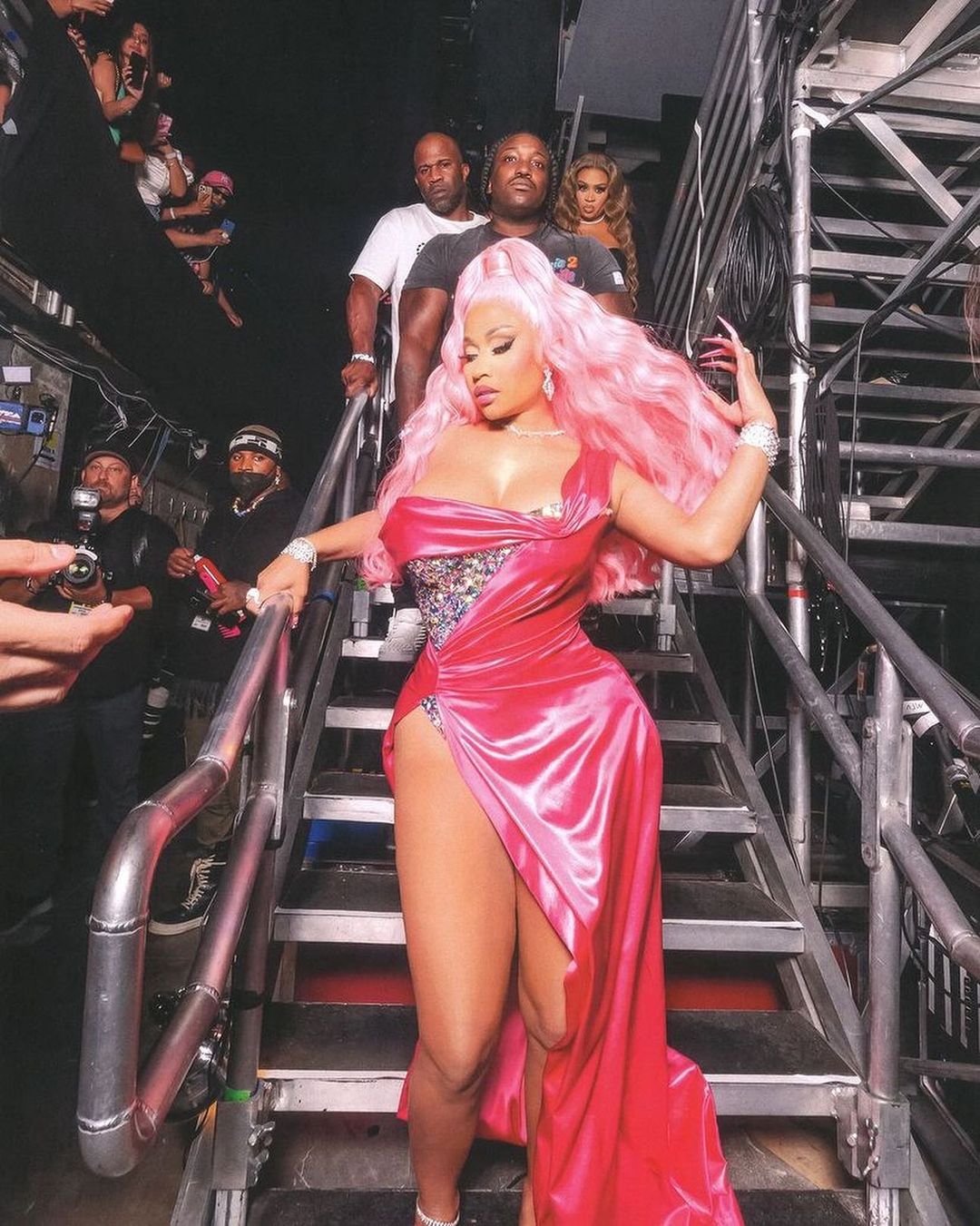 Nicki Minaj was her vibrant, Barbie-esque self on the main stage of the VMA’s as she accepted her Video Vanguard award in a custom Dolce and Gabbana look styled by Diandre Tristan. For accessories, her pink Louboutin heels, Cicada Jewelry bracelet and REZA necklace and rings complimented the entire look.