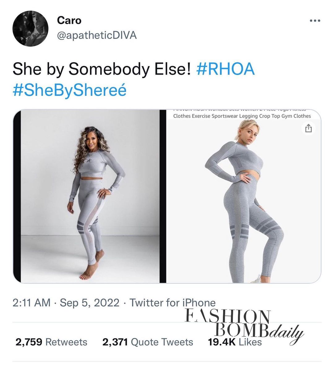 Twitter user @apatheticdiva called Shereé out after coming across her exact runway items on Amazon tweeting “She by Somebody Else #RHOA #ShebyShereé”. Many fans shared the same sentiment, reposting the tweet that has now gone viral on other platforms and stirring up quite the controversy.