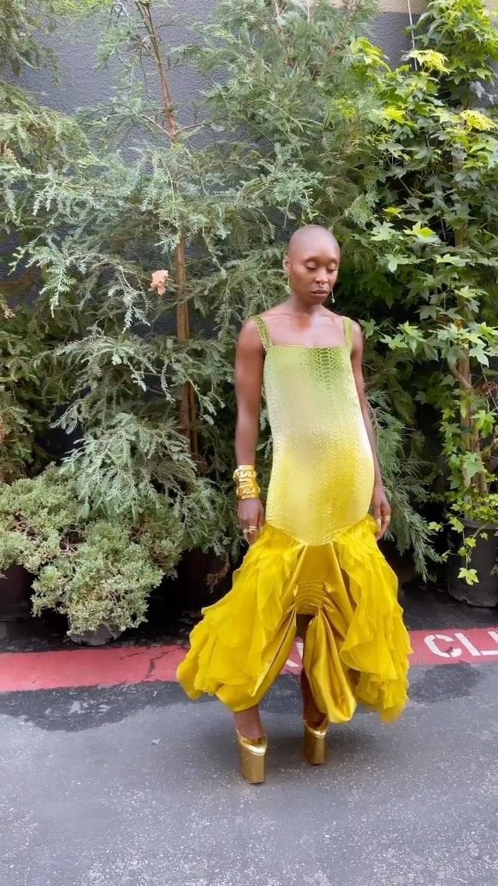 Last but not least, Cynthia Erivo, who starred in Disney’s Pinocchio, attended the movie premiere wearing a John Galliano that we couldn’t miss! Styled by Jason Bolden, the scaly, fish-like design was complimented to utter perfection by her sky high platforms – a statement shoe choice and we are living for every moment of it.
