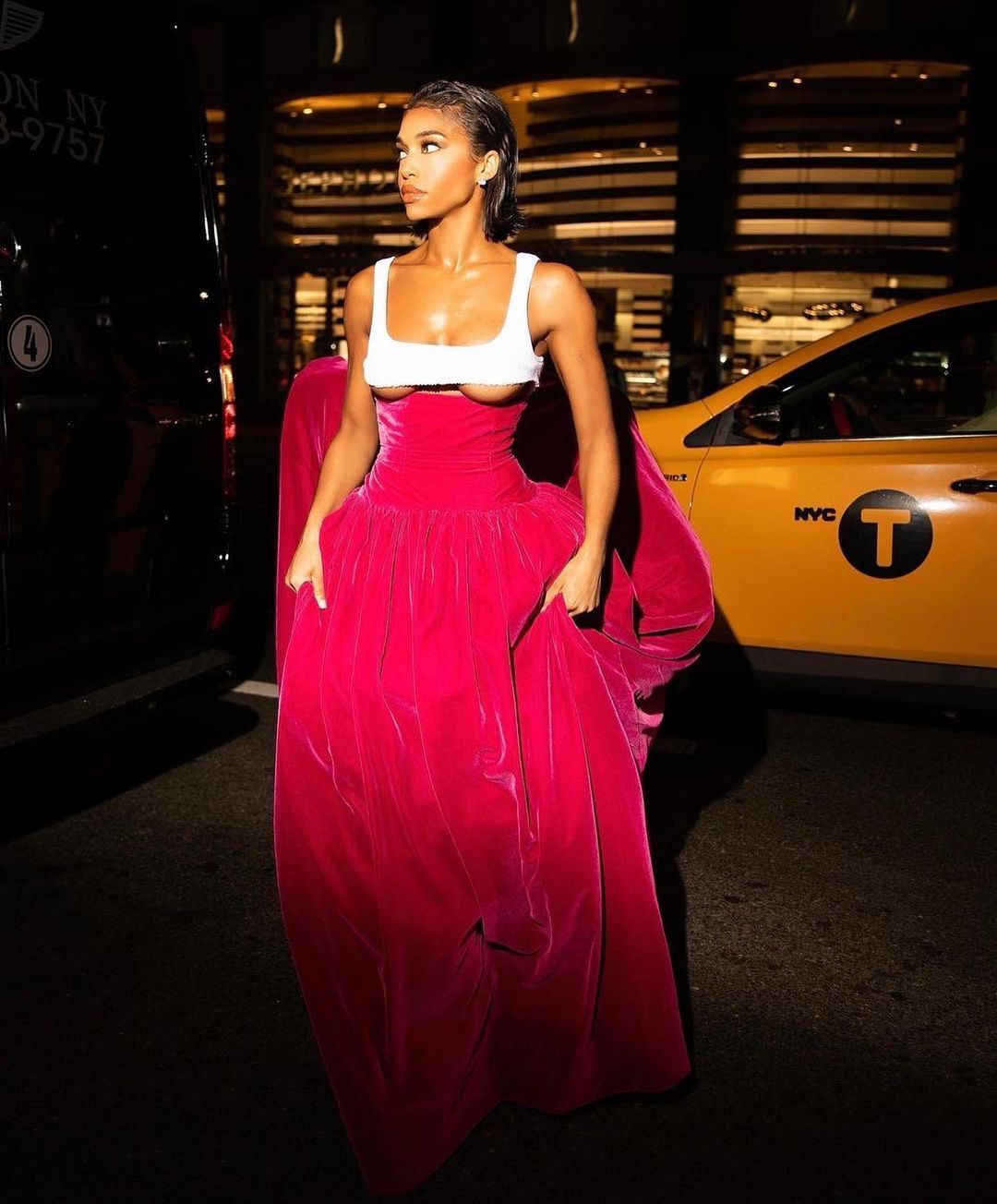 Call Lori a Christian Cowan girl cause she wears the brand well! Pulling up to the Harper’s Bazaar Icons Party, the model and entrepreneur sported a hot pink velvet and white jersey Resort 2023 gown with just a peek of under boob. This style moment will most certainly go down as one of Lori’s more risqué glam looks, and we have a feeling it’s about to set a serious trend!