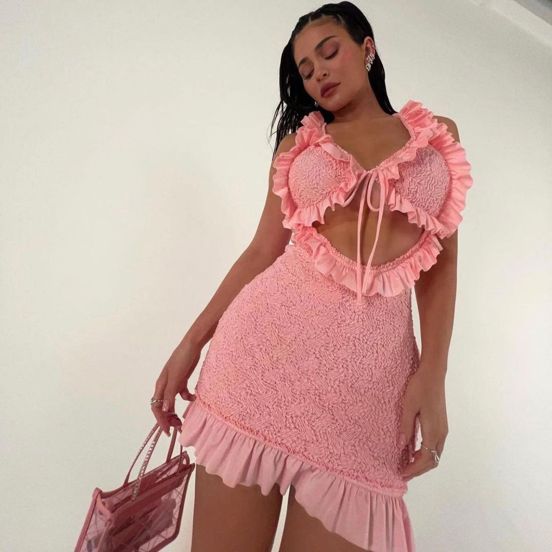 On three separate occasions, Ayesha Curry, Kylie Jenner and Keyshia Kaior each wore the ultra flirtatious $750 pink ruffle dress by Alexander Wang. Who wore it best? You may remember the first time the dress was spotted on Kylie Jenner back in July during the shooting of her last Kylie Cosmetics promoting matte lips.