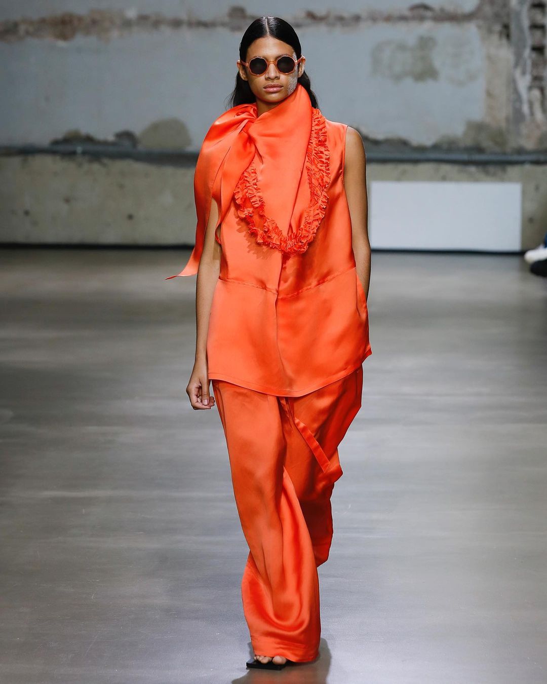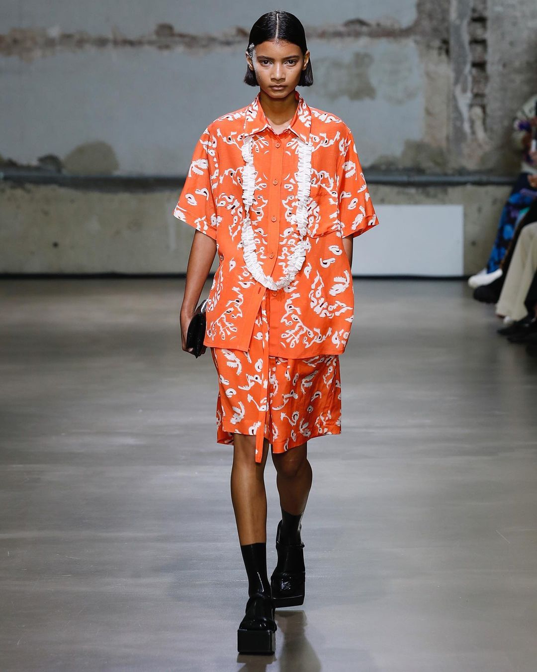 Between 38 looks, the color palette incorporated tropical hues purple, orange-red, turquoise and peach with earthy green tones contrasted against black and white neutrals. Its all in the detail for this designer as he sprinkled well-placed summer prints and ruched neckpieces conveying floral necklaces. As such, the entire collection is a clear love letter to everything on a summery beachside.
