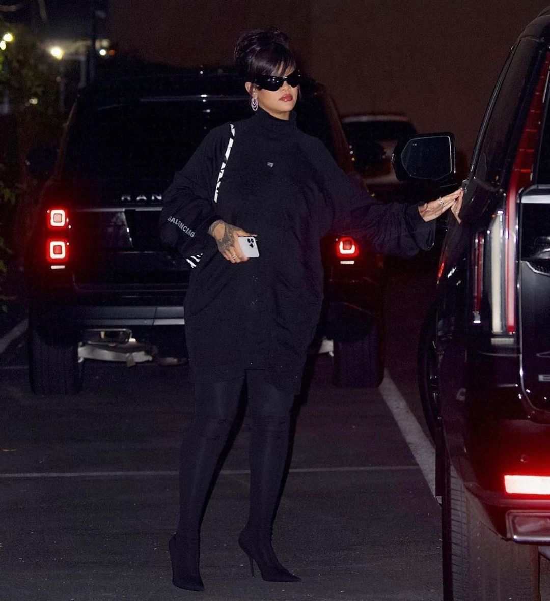 Now that Rihanna is confirmed to perform during the Super Bowl half time show this coming February, these studio style sightings just hit different! We are here for the new music and the fashionable moments that come with it. Speaking of which, Rihanna was recently spotted in LA again making a quick trip to the recording booth wearing mostly Balenciaga and a $1,900 purse by the Attico! Her black pantaleggings retail for $3,050 while the shades could be yours for a mere $685. Get the look below: