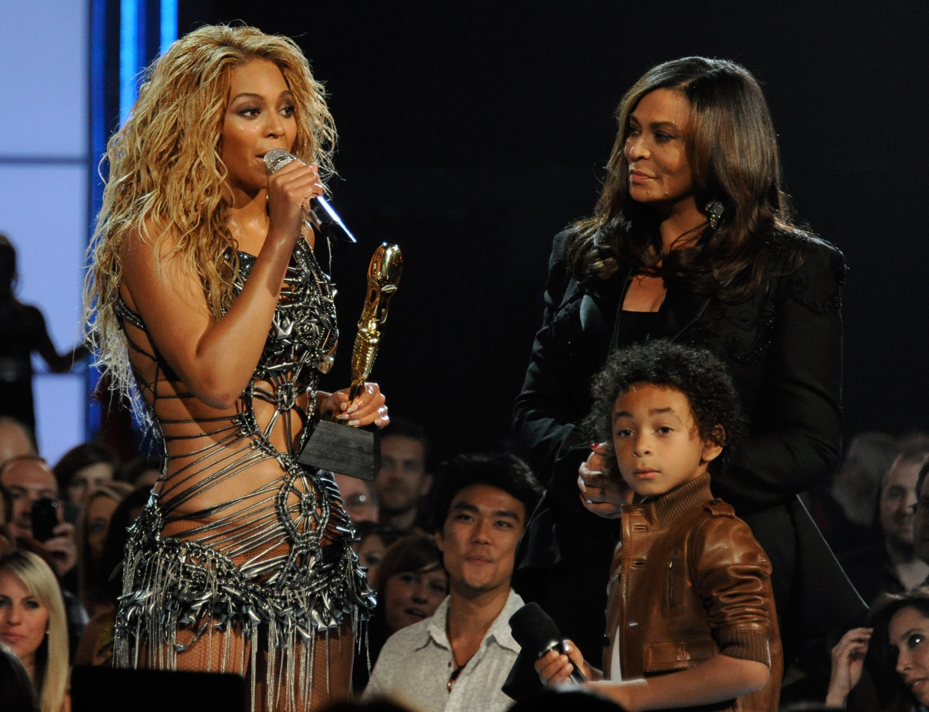 LAS VEGAS, NV – MAY 22: Singer Beyonce Knowles (L) accepts the Millennium Award from her mother Tina Knowles and nephew Daniel Julez Smith Jr. during the 2011 Billboard Music Awards at the MGM Grand Garden Arena May 22, 2011 in Las Vegas, Nevada. (Photo by Ethan Miller/Getty Images for ABC)