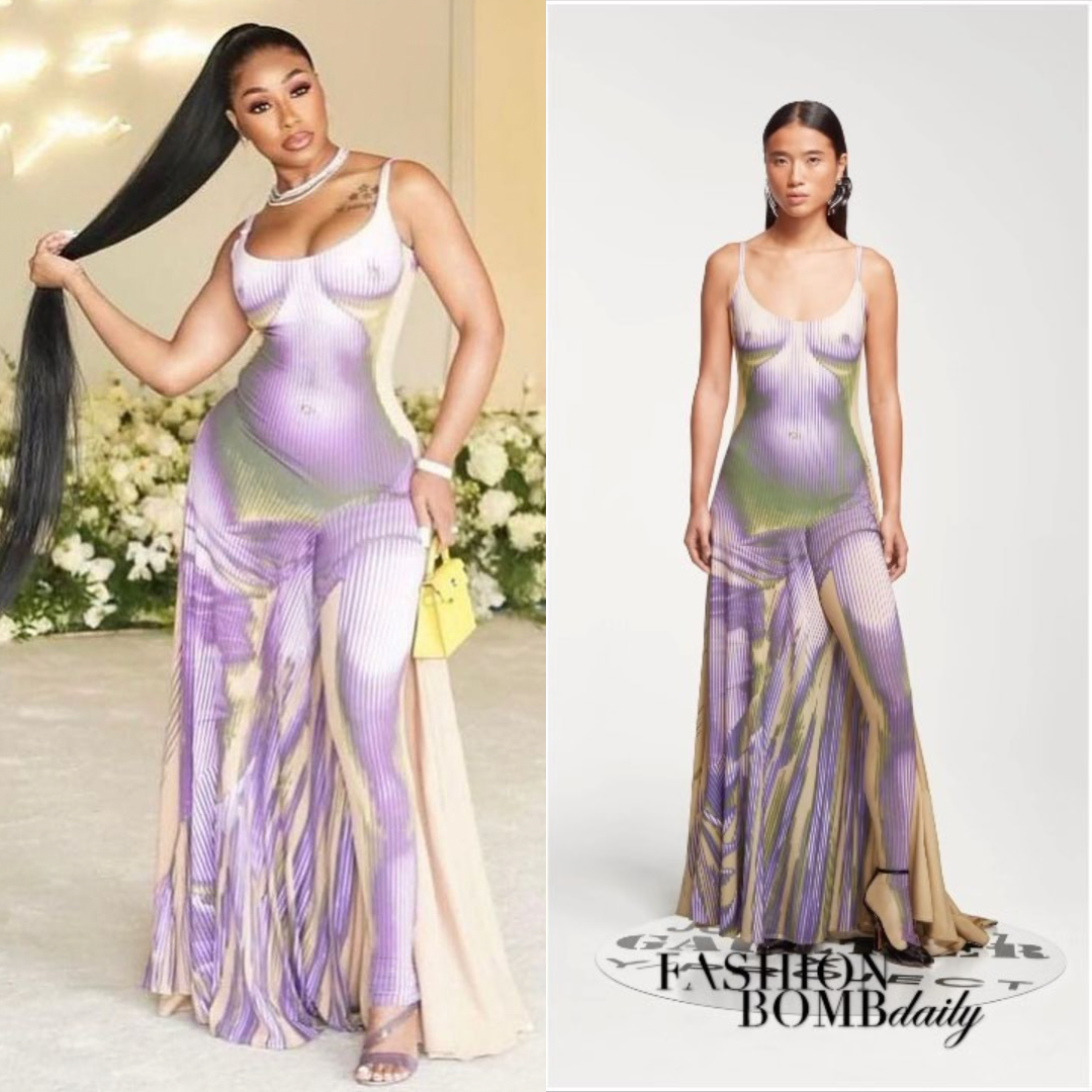 Yung Miami showed Diddy love by gifting him a cuban link chain in a $1,590 Jean Paul Gaultier x Y/Project dress styled by Shaq Palmer with makeup by Michele Latrice and hair styled by