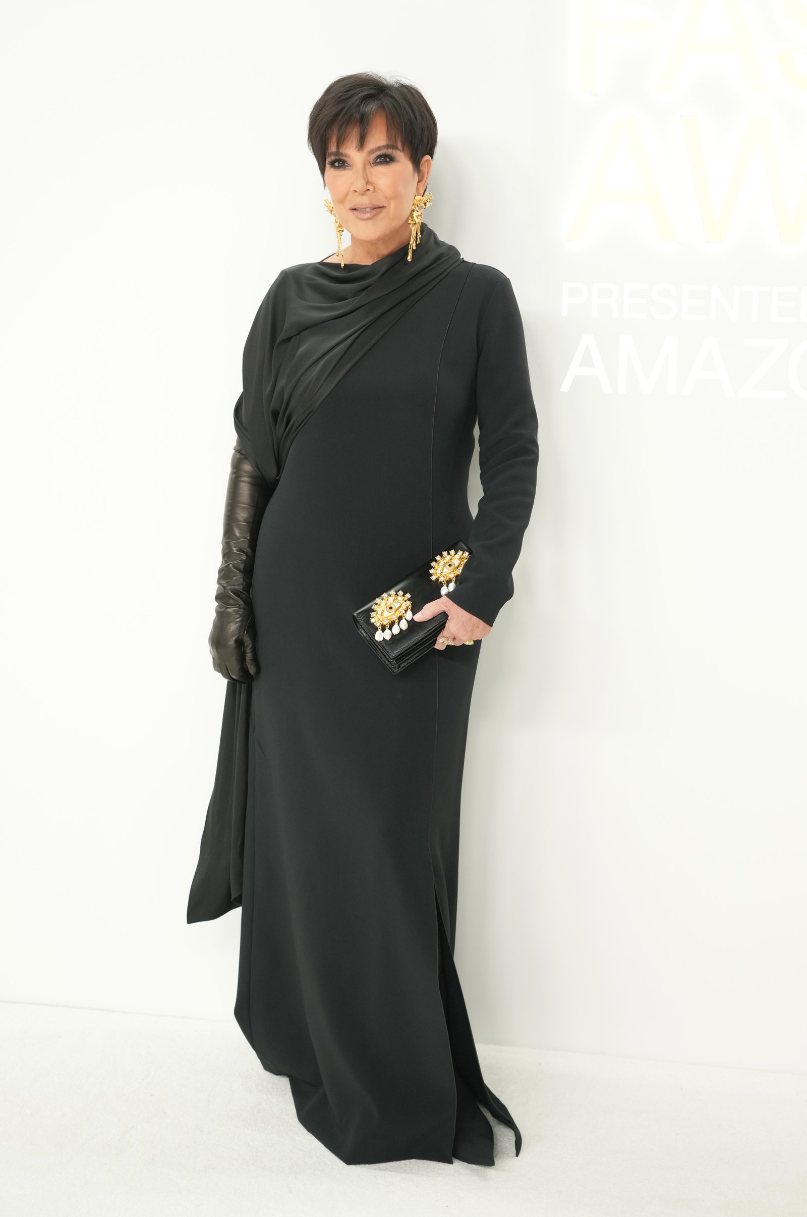 Like her daughters Khloe and Kylie, Kris also arrived to the CFDAs in an asymmetric gown. She accessorized her short sleeve with a leather opera glove giving this ensemble a bolder look.
