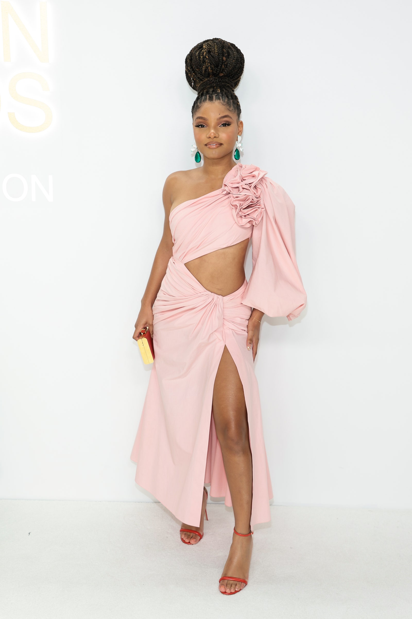Our Ariel arrived to the CFDAs looking pretty in pink and making a statement with her hair. While the bulbous updo stole the show, the sweetness of the cut-out midi dress and 3D appliqué suit Halle rather adorably.