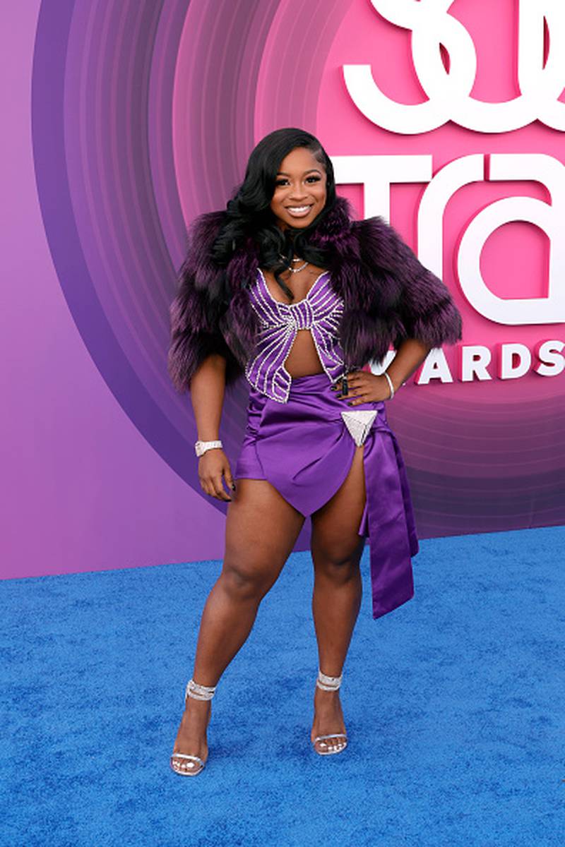 At first glance, Reginae’s amethyst Area moment is a lot to take in. The cropped fur with her gorgeous curled tresses swallow her neck and shoulders, creating a stuffy look, but imagine for a second the flirty youthfulness of the look…sans the coat.