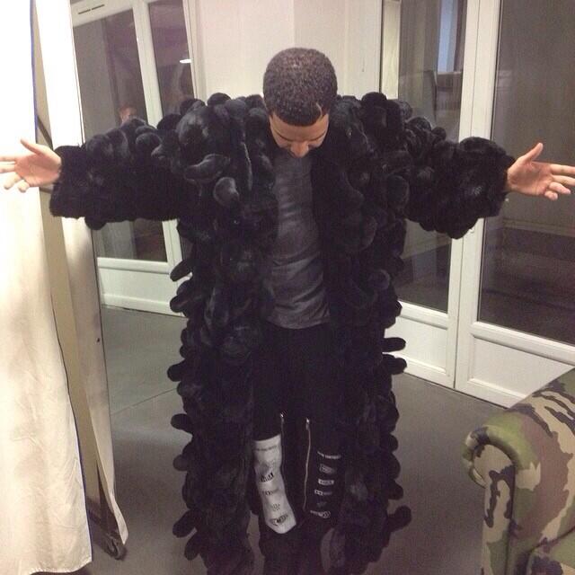 Toronto held a Raptors game in which Canadian mega rapper Drake made a fashionable court-side appearance bundled up in a one-of-a-kind Jean-Charles de Castelbajac teddybear coat! The cozy jacket came from the designer’s archives and was originally crafted in 1987.