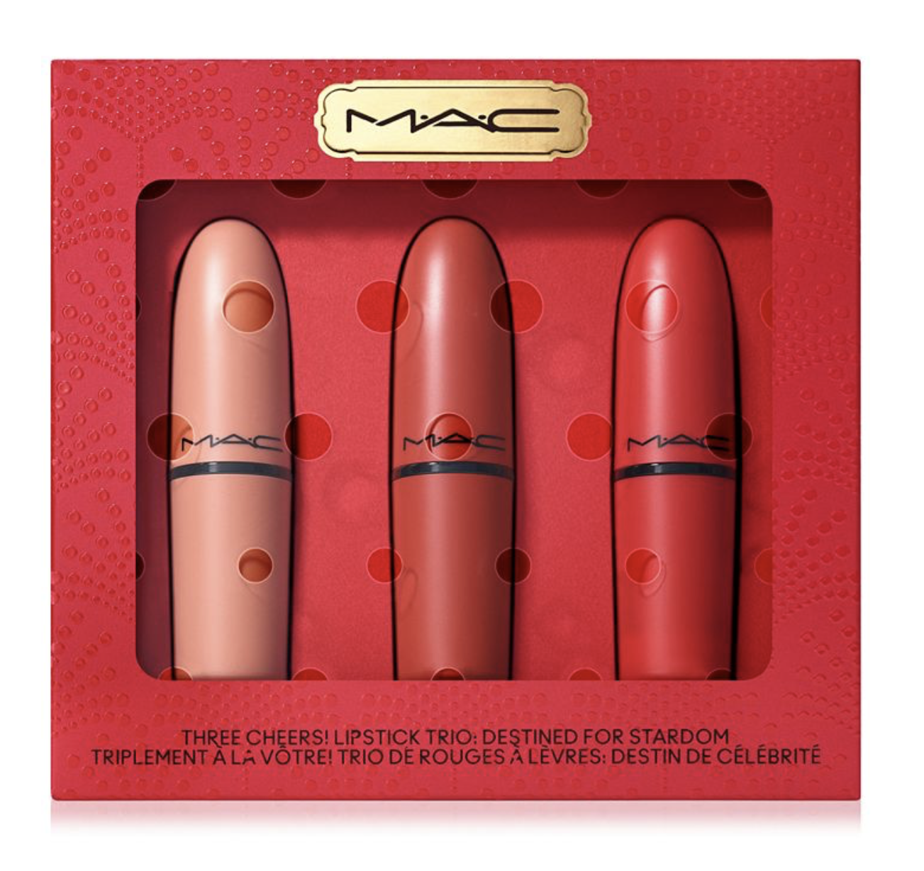 Kiss the season and be jolly with this Lipstick Trio from MAC Cosmetics, which boasts 3 iconic colors that work on a range of skin tones. This set is ready to gift in cheery packaging.