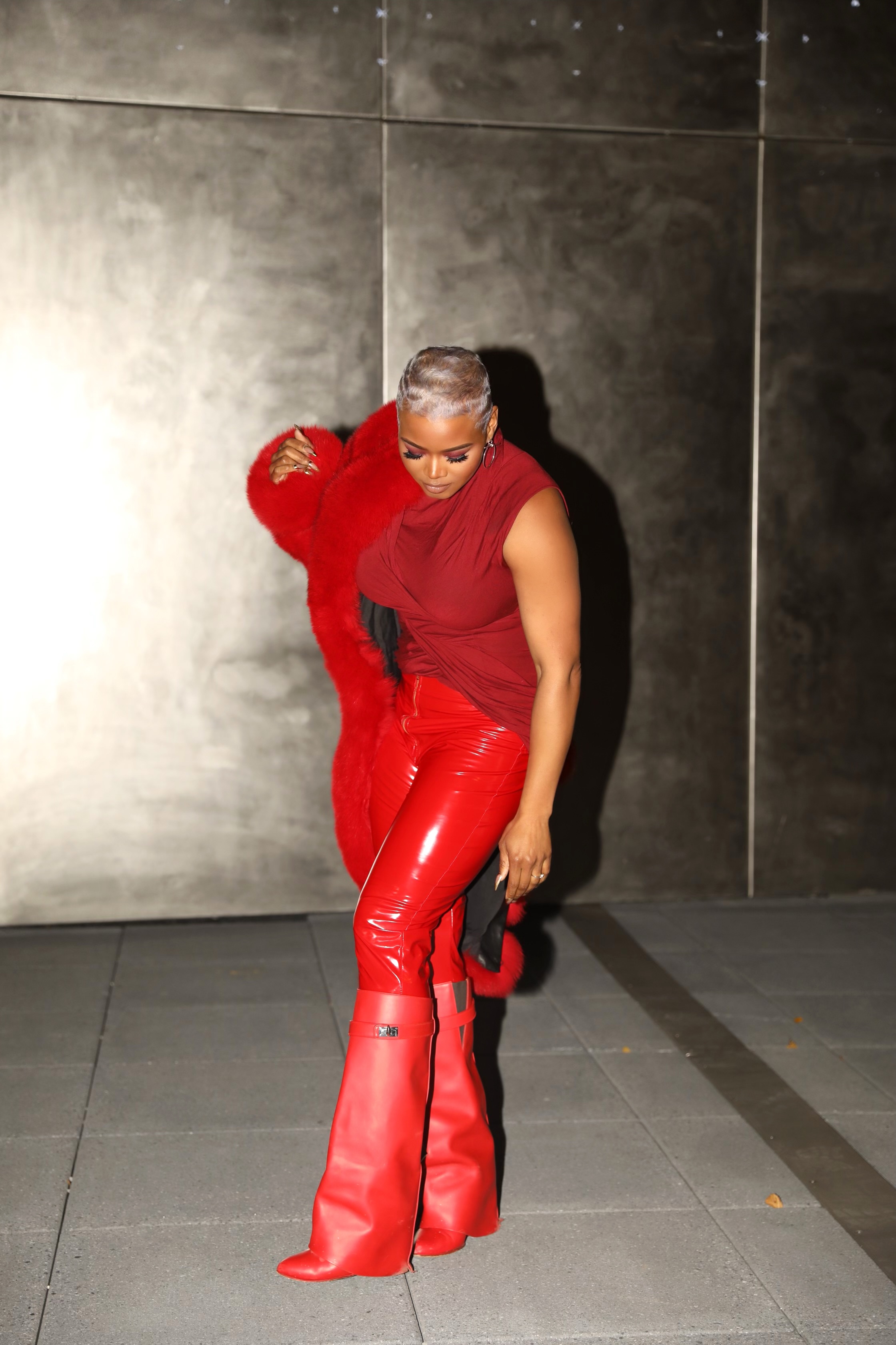 For the occasion, I wore Givenchy red, anchored by Givenchy boots, pants from beautylifefunShop.com, a Rick Owens top, and a coat from Daniel’s Leather.