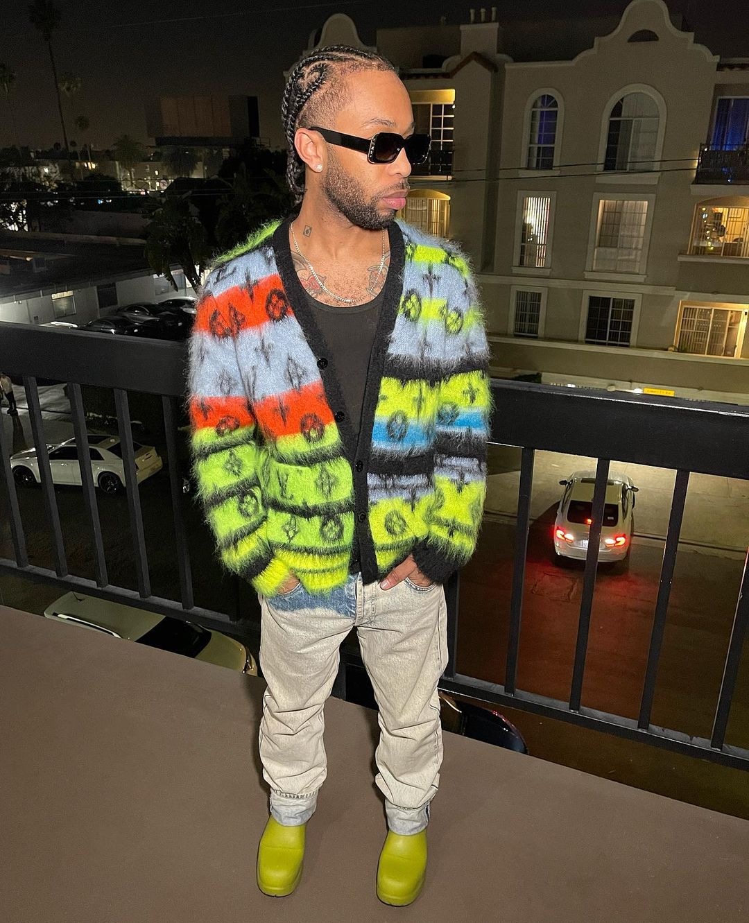 Pricé is a creative director and designer of his namesake clothing line. While his streetwear laden label features buildable basics in a simple monochromatic color palette, his own style is full of vibrant color and various patterns.