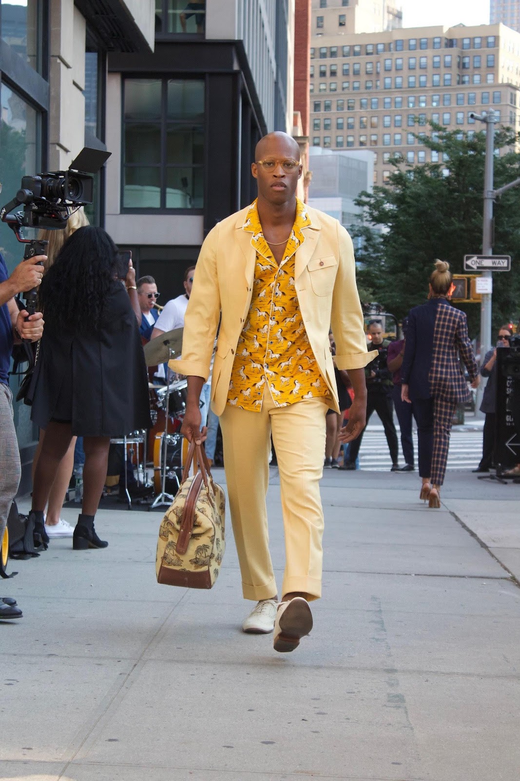Male models were strutting down the customized street run way while wearing customized blazer coats and dazzling bags.