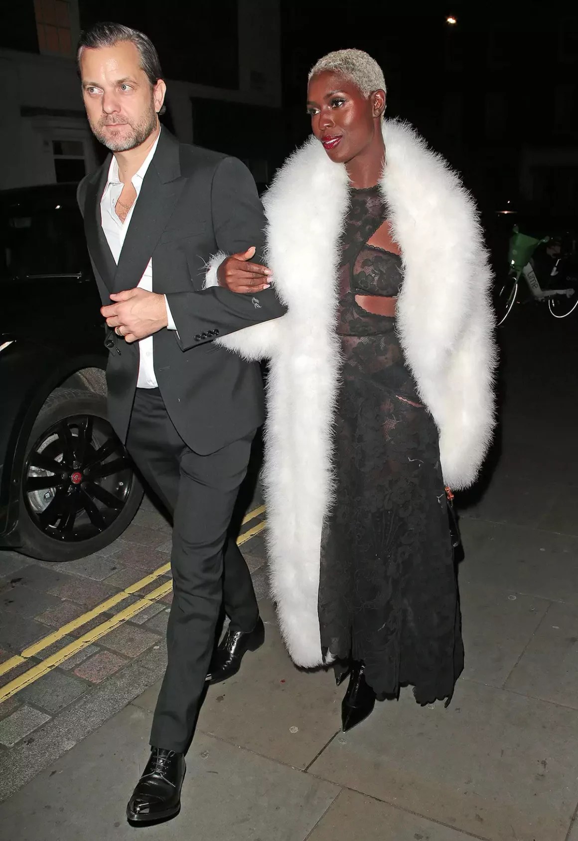 Jodie Turner-Smith ended her night of glamor at the after-party, where her final look incorporated her beau, Joshua Jackson. The dazzling pair went with a black and white color story with Jackson in a contemporary black suit and unbuttoned white shirt while Turner-Smith wore a lacy black cut-out dress with her previously worn white fur coat.