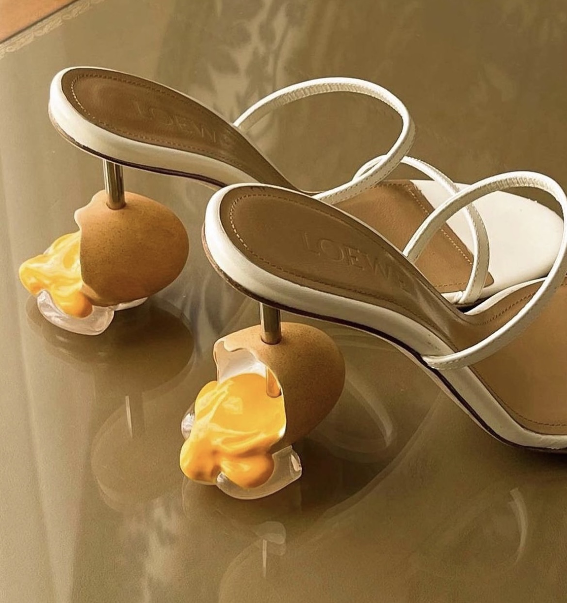 Spanish luxury fashion house Loewe have been reaching new heights recently with their immensely popular novelty heels including designs with balloons, nail varnish, roses and yes, even eggs!