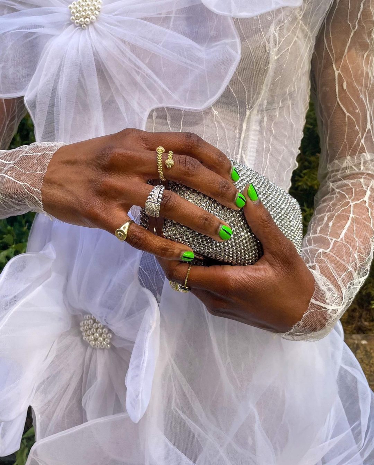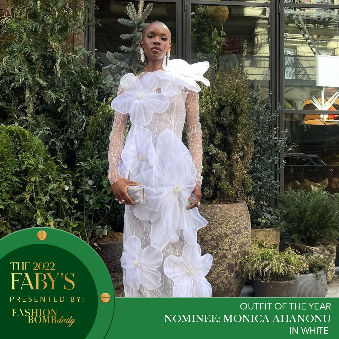 Illustrator Monica Ahanonu went viral when she posted a reel of her snapping some pictures outside this year’s 15 Percent Pledge and getting stopped by a mesmerized toddler and, quite frankly, we were equally mesmerized! Wearing a Viviane Valerius floral appliqué gown and Brother Vellies heels, she was styled by James Carroll.