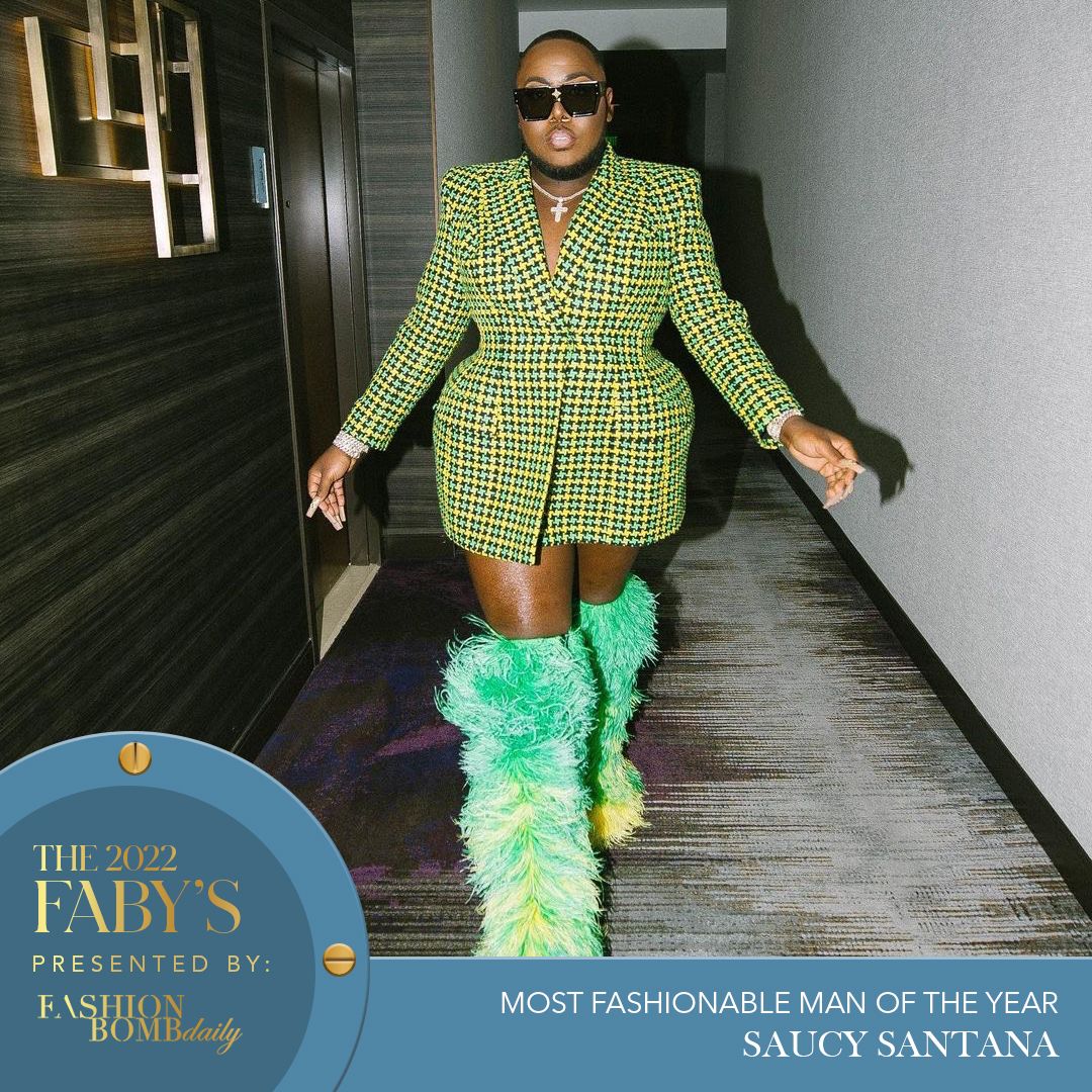 Santana may be a material gworl, but he’s also one of rap’s most stylish emcees. There’s no limit to Saucy’s style as he experiments with crystal trim corsets, oversize Marni knits, gender-bending dressing, and pattern mixing.