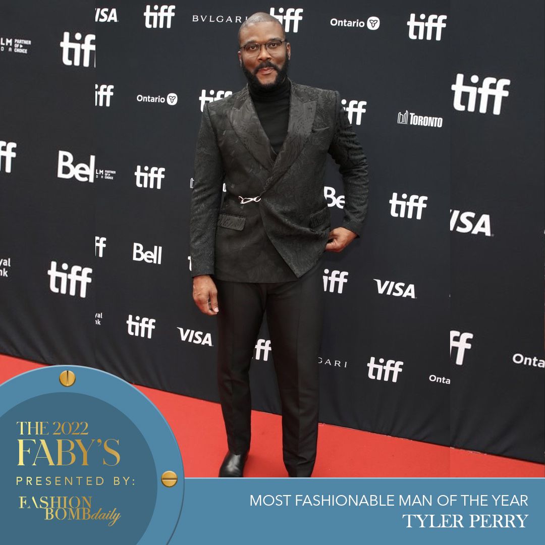 Tyler Perry appreciates a refined look and wears it well. When he’s not in a textured tuxedo or sleek suit, he gravitates towards designer text logo knits.