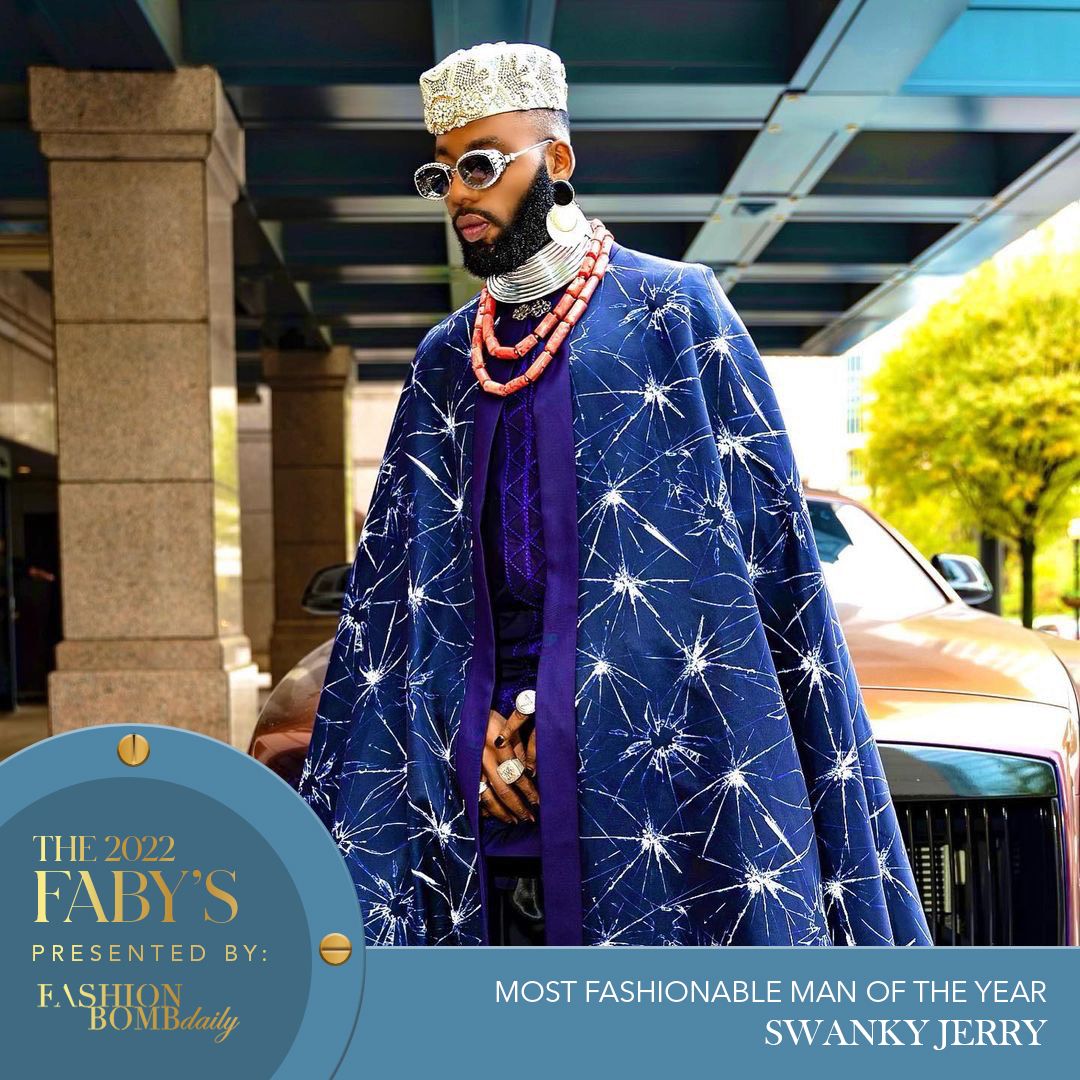 Young, famous, and stylish, Swanky Jerry is the go-to guy for Davido’s, Tiwa Savage’s, and AKA’s looks. While he’s known as a celebrity stylist for some of Africa’s elite in entertainment, Jerry is a style star himself. He’s keen on looks that don’t fall short of drama.