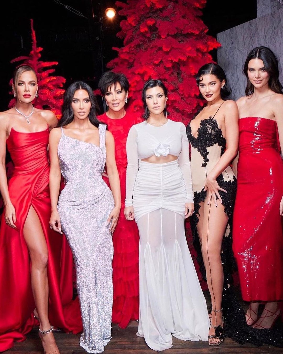 For Christmas, the Kardashian-Jenner sisterhood got together wearing (mostly) red and white, with a hint of silver, nude and black lace. While Kim wore silver Versace and Kourtney wore Pre-Fall 2023 Philosophy di Lorenzo Serafini styled by Dani Michelle to the family Christmas Eve party, Khloe arrived in custom Nicolas Jebran and Kris wore Pre-Fall 2019 Valentino. Meanwhile, Kylie stood out in a lacy Mugler design.