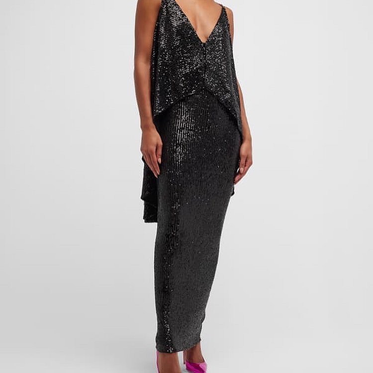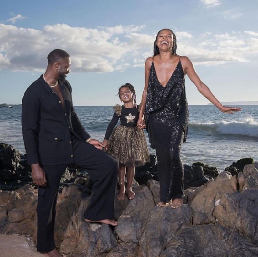 Dwyane Wade, daughter Kaavia and Gabrielle Union snapped some New Year’s photos next to the beach this year! Gabrielle’s deep V, black sequins NERVI dress can be shopped at Neiman Marcus for $1,380. Get the look below!