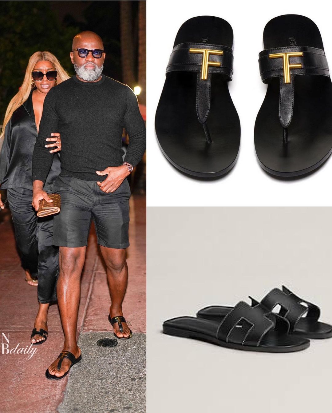 While out for dinner in Miami, Nene Leakes was spotted with her partner Nyonisela Sioh. The couple complimented each other in all black looks by Nyonisela’s fashion label Nyoni Couture and accessorized their outfits with designer sandals, including $640 Tom Ford logo-plaque leather sandals on Nyoni and $660 Hermès Oran sandals on Nene. Get the look below!
