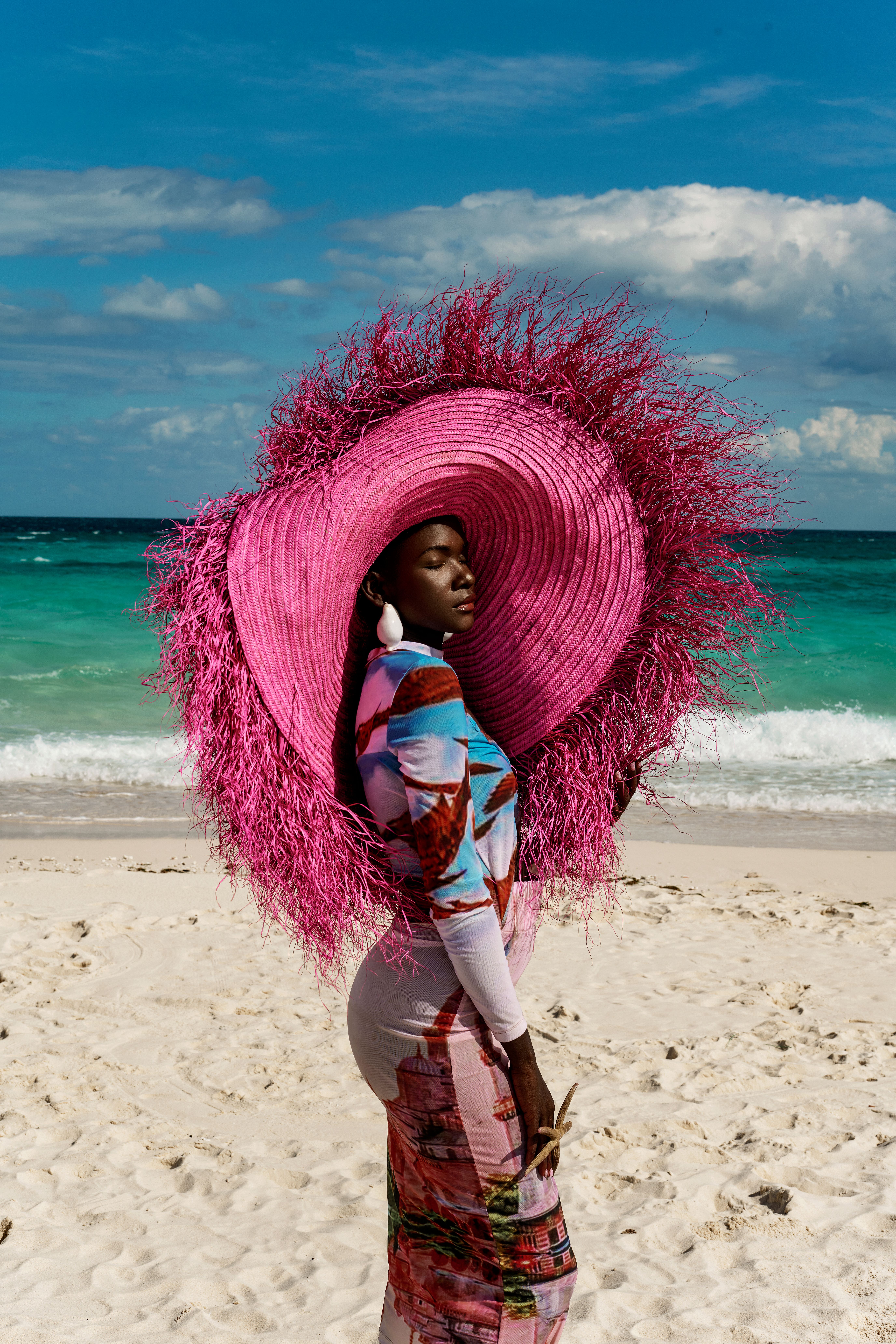 Sankoh is known to draw inspiration from her travels, and her latest expedition across three countries left her so creatively energized, she’s set to drop three new collections. The first of the three is the Goddess of the Dawn collection. An accessories-focused lineup featuring hats, tote bags, and clutches heavily influenced by her time in Tanzania.