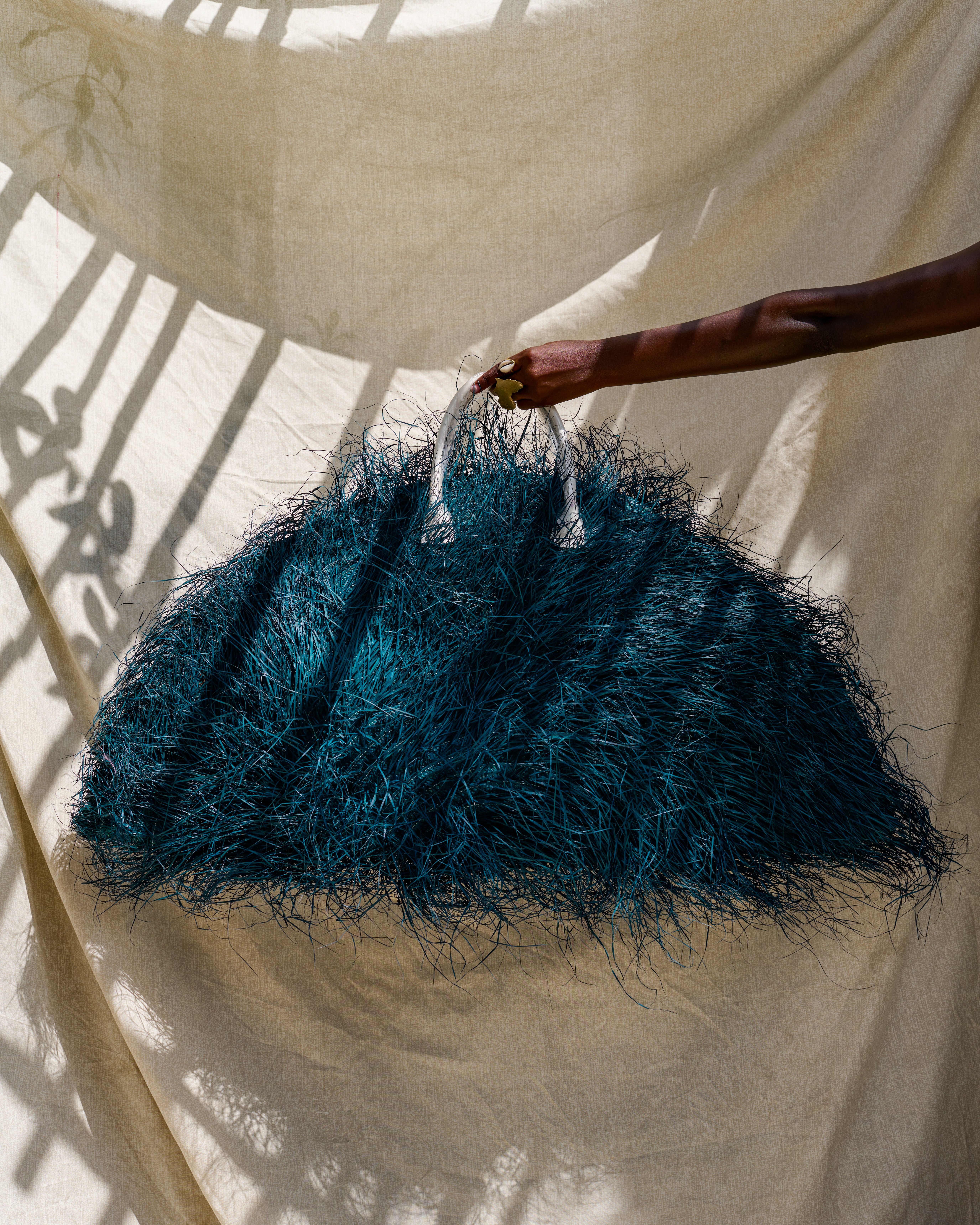 Each piece speaks to the vibrant colors, ornate patterns, and decadent textures that decorate the serene savannahs of the Serengeti and the breathtaking beaches of Zanzibar. Taking inspiration from the acai trees, the oversized Amina hat stands out as the collection’s centerpiece, while totes and clutches reflect the bold colors of local landscapes. Prussian blue for the Indian Ocean, flamingo pinks, sun-soaked tones of raffia, and the vibrant mustard of lion’s manes. Local women artisans wove each piece, further cementing the touch of Tanzania.