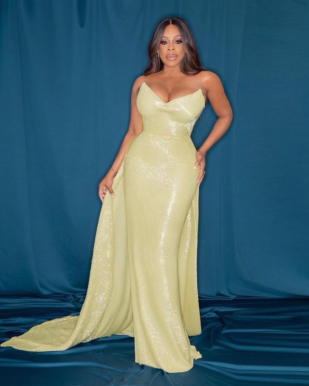 Niecy dazzled in a pale yellow custom Jason Wu gown and Jacob & Co. jewels, styled by Wayman Deon and Micah McDonald. Her makeup was done by Porsche Cooper with hair by Robbi Rogers.