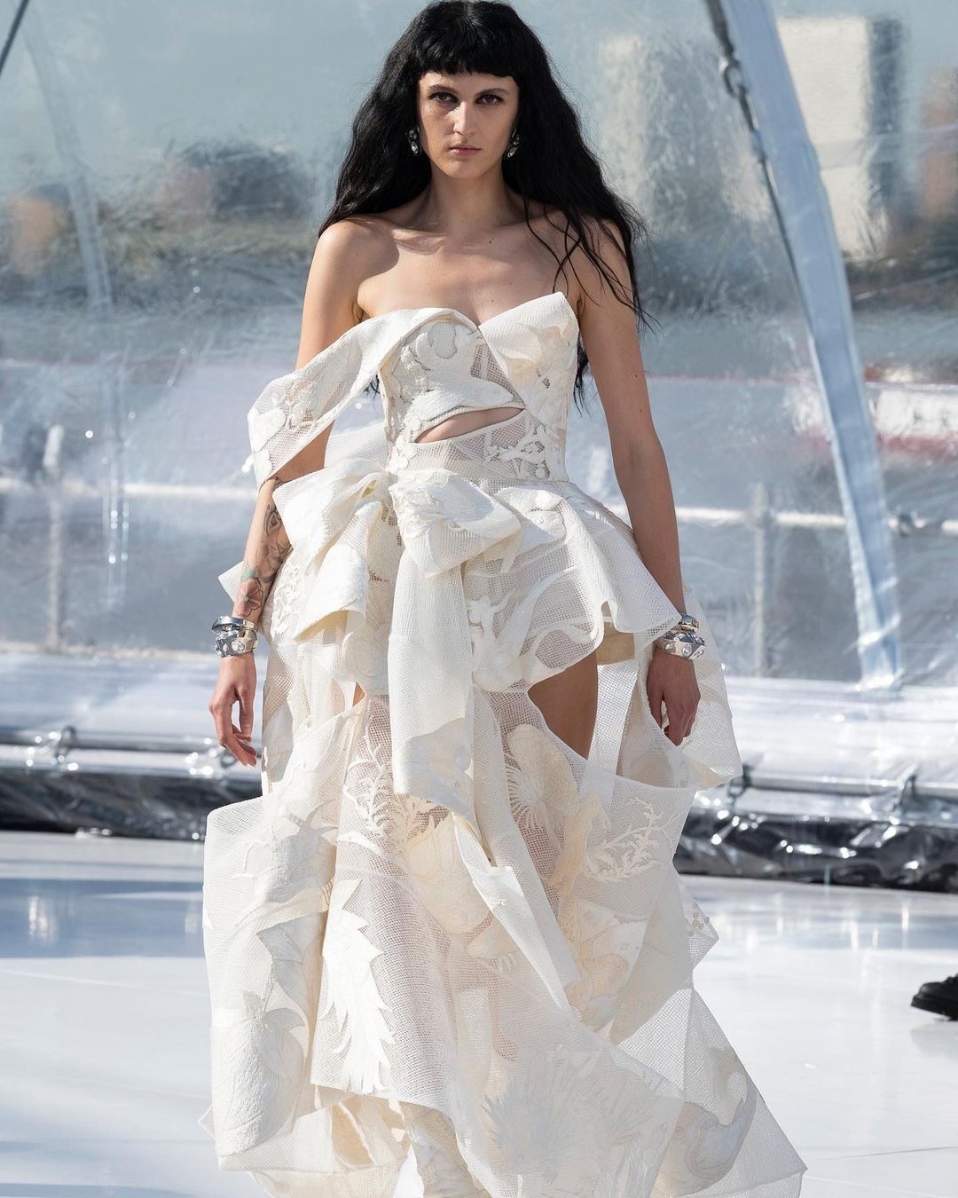 Elle Fanning opted for a deconstructed Alexander McQueen SS23 gown styled by Samantha McMillen.