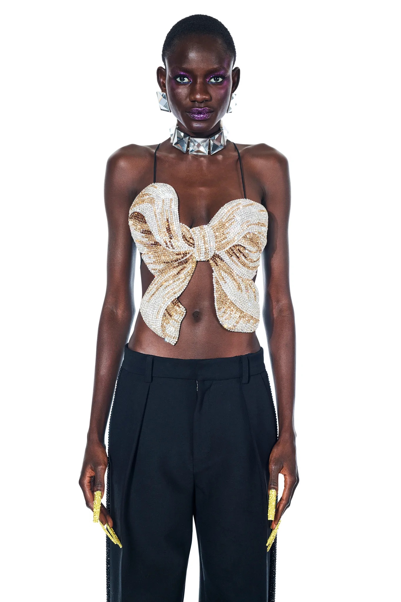 Ari went through her own highs and lows this season, but that didn’t stop her from popping up pretty for the reunion. She wore a crystal-covered Area crop top with white high-waist white pants and Versace heels.