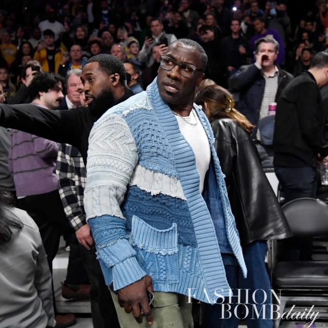 You ask, we answer @fashionbombmen ! @figi.rated writes, “Good morning! Can you please share details on Shannon’s sweater? Thank you so much! – Fiona” @martyt1105 adds, “Can we get the details for Shannon Sharpe’s sweater from last night Lakers game.” Shannon Sharpe got heated at last night ‘s Lakers vs Grizzlies game in a $3,125 Greg Lauren patchwork cardigan.