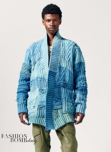 His chunky cotton cardigan has a patchwork design.