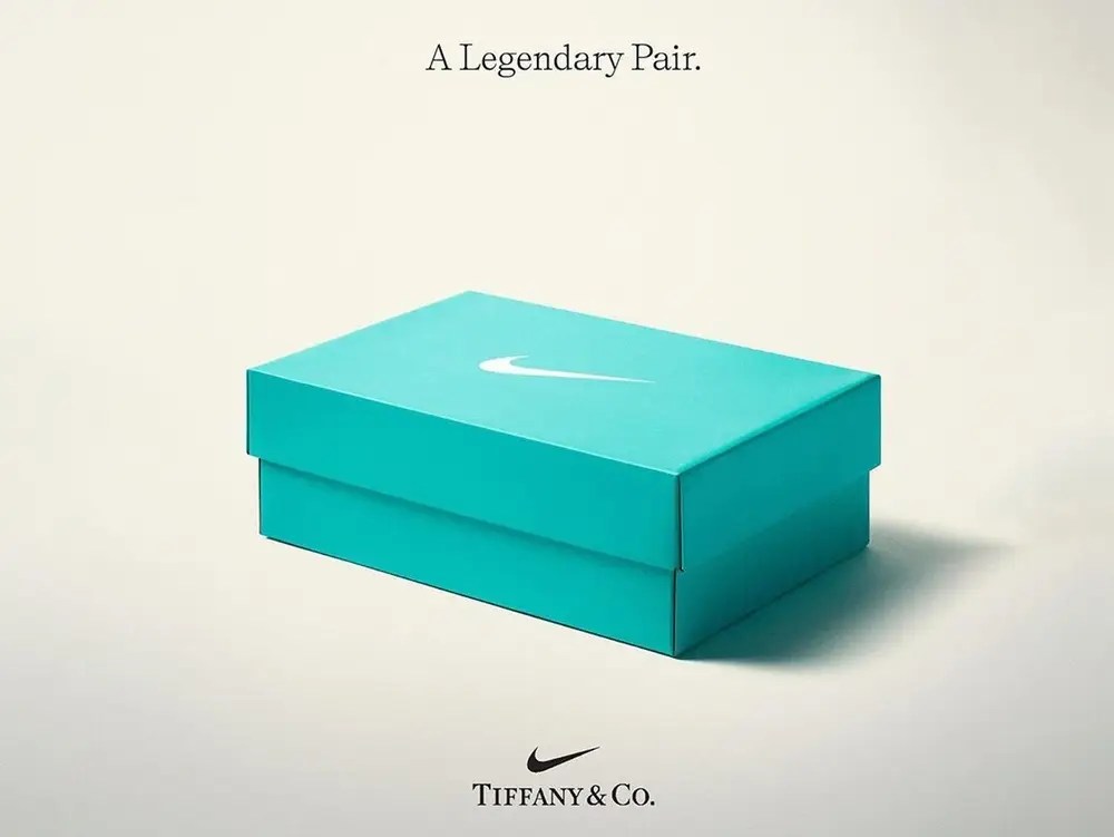 Earlier this month sportswear giant Nike, and luxury jewelry brand Tiffany, teased an upcoming collab. Releasing a photo of a Nike shoe box adorned in Tiffany blue, the ad read ‘A Legendary Pair.’ with the Nike swoosh above the Tiffany & Co. logo.