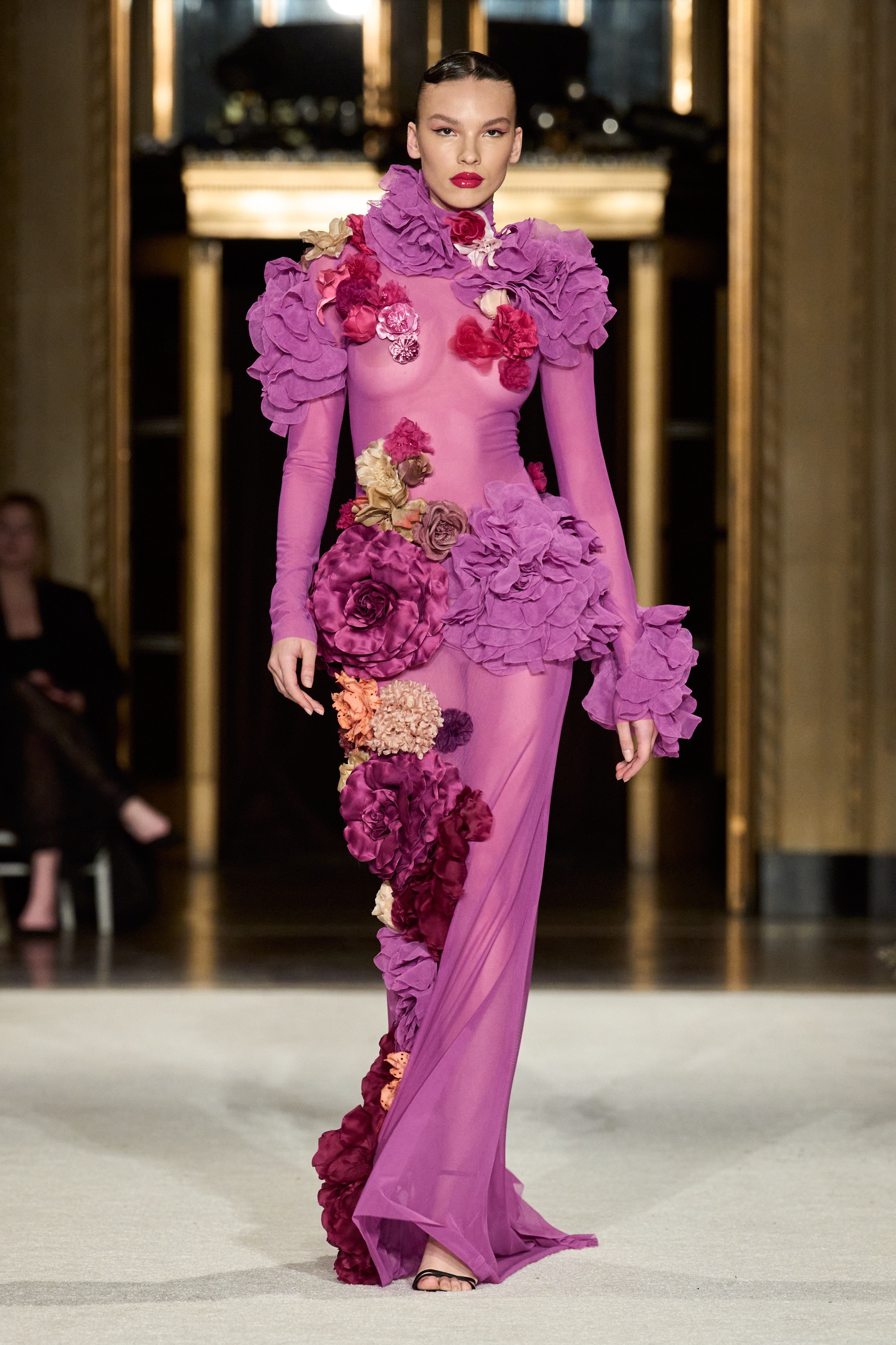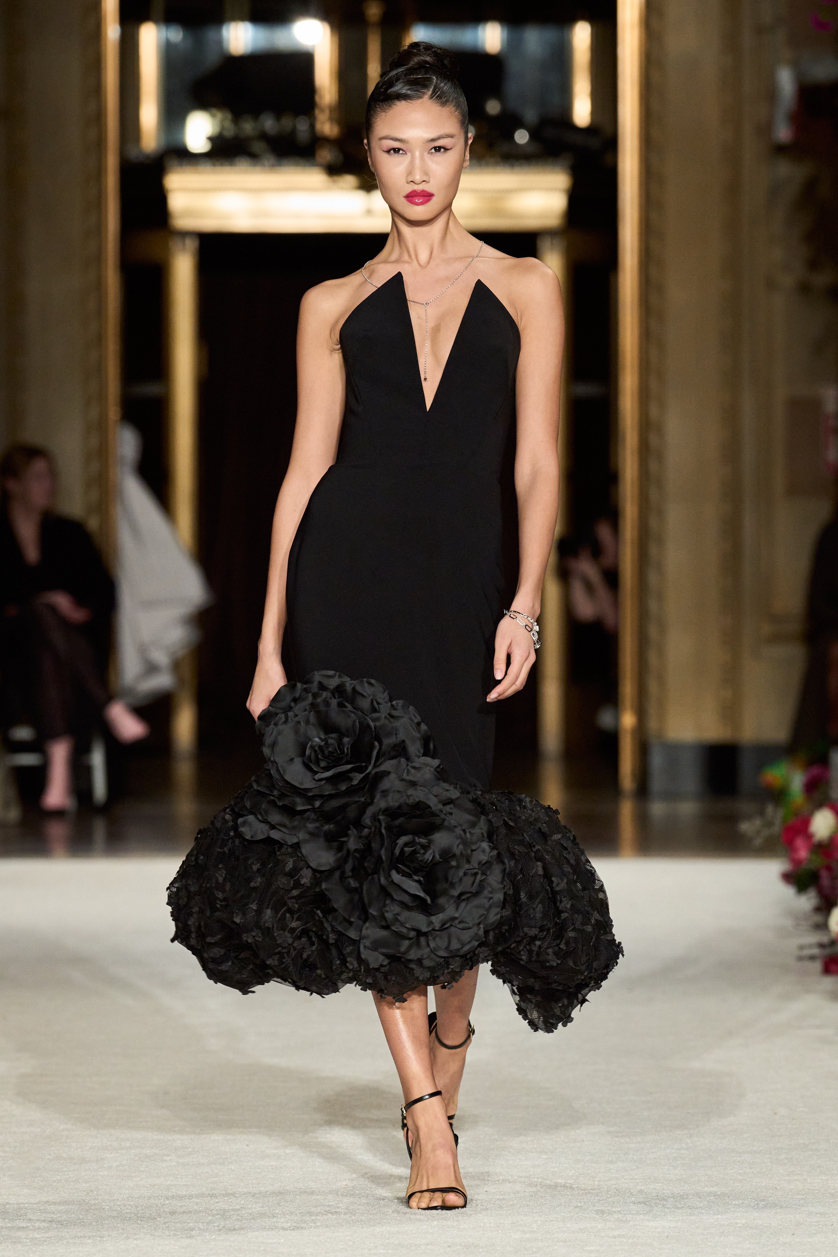 Siriano references the collection as a sexier take on ‘Aubrey Hepburn’s rose garden.’ There were pink, purple, and white roses lining the runway and filling the air with their lovely scent as the show notes featured the iconic actress’ image.