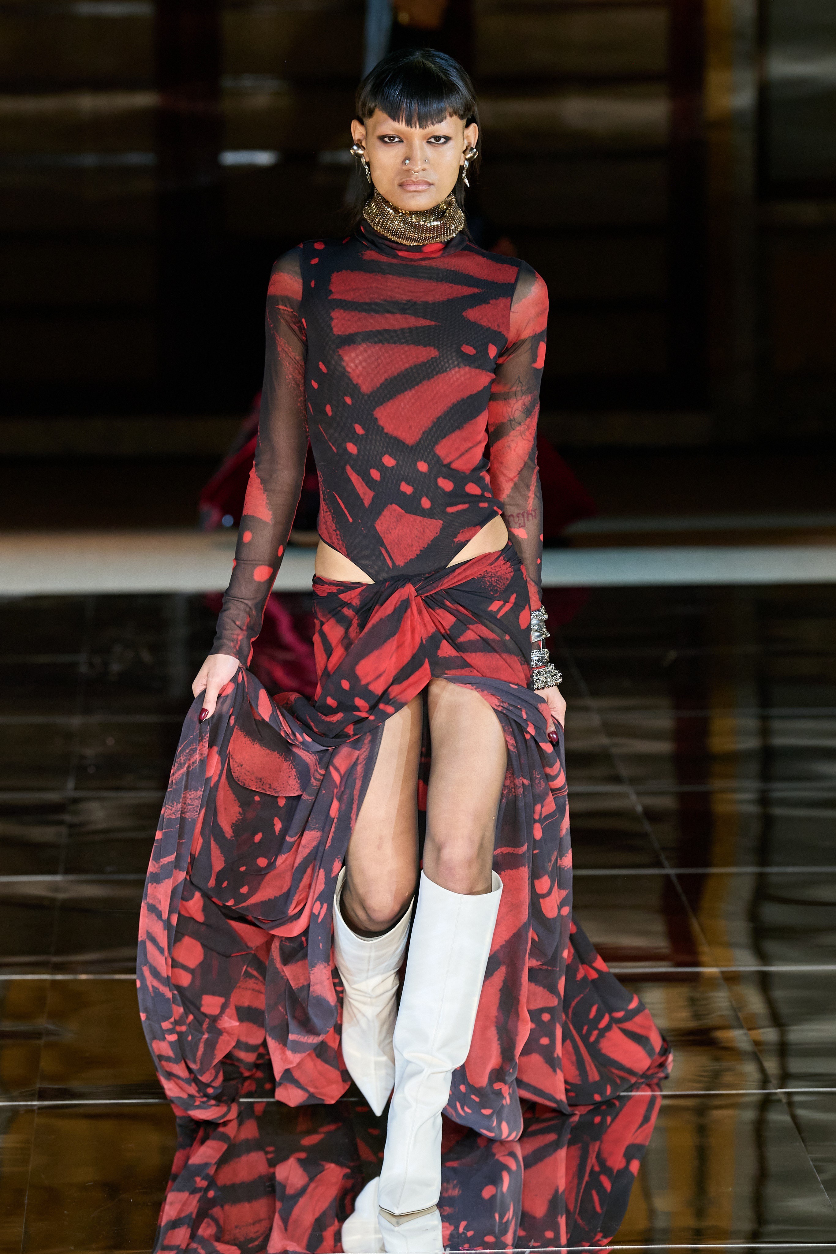 Animal print has become Fashion Week commonplace, and the usual options are the iconic leopard and zebra, but Prabal Gurung looked to the sky this season. Across the runway, butterfly prints and patterns adorned a diverse range of styles and sizes. Draped knits, sashes, and dresses feature the wing design in a mosaic style.