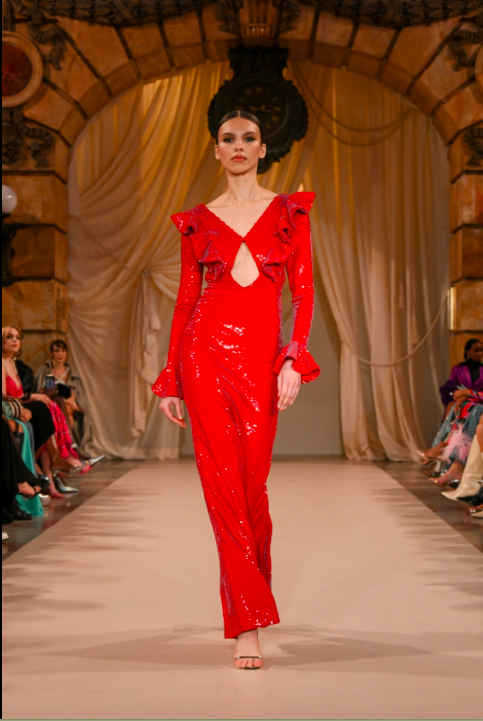 Bonaldi’s haute moment exuded modern day Hollywood, and gave us a fresh look at her beautifully crafted party-wear. Her designs, which were handmade by the best artisans of Brazil’s embroidery capital, included everything from embellished rhinestone gowns to strategically adorned velvet suits rich and lavish in brilliant colors. PatBo embellished on every fabric you can think of including sheer, velvet, silk and denim.