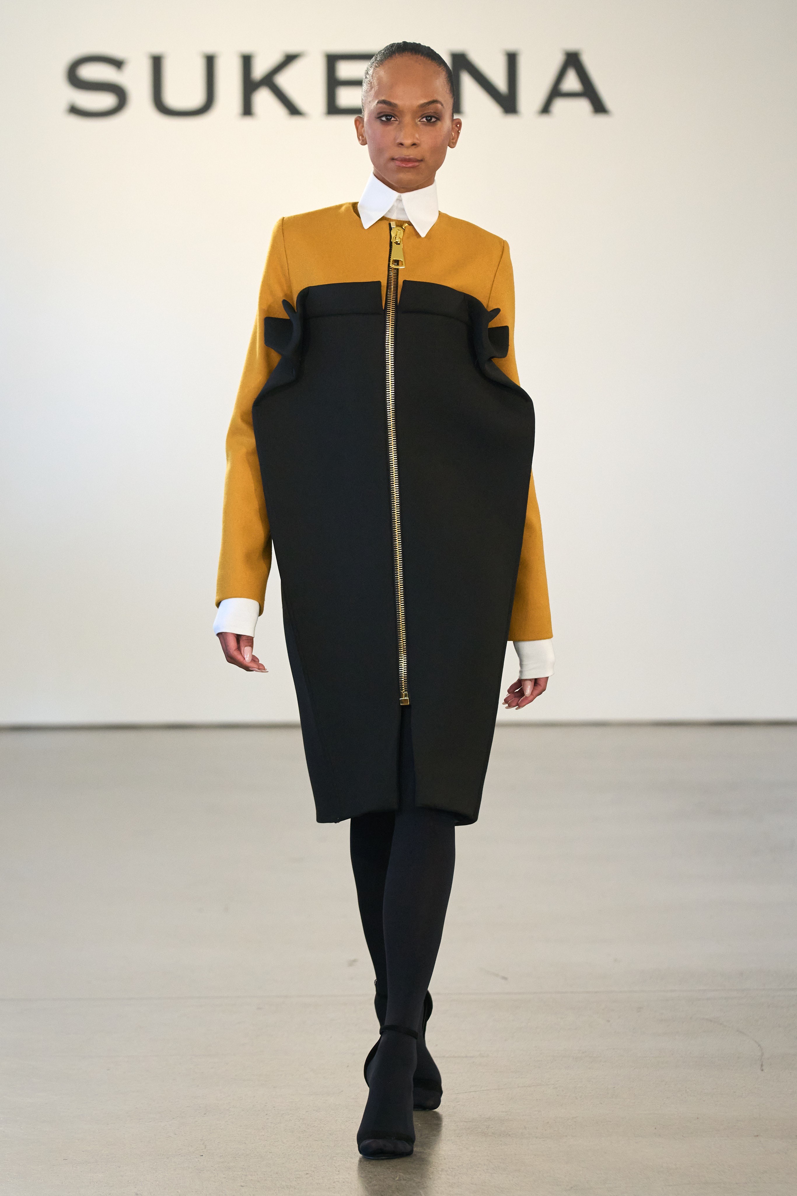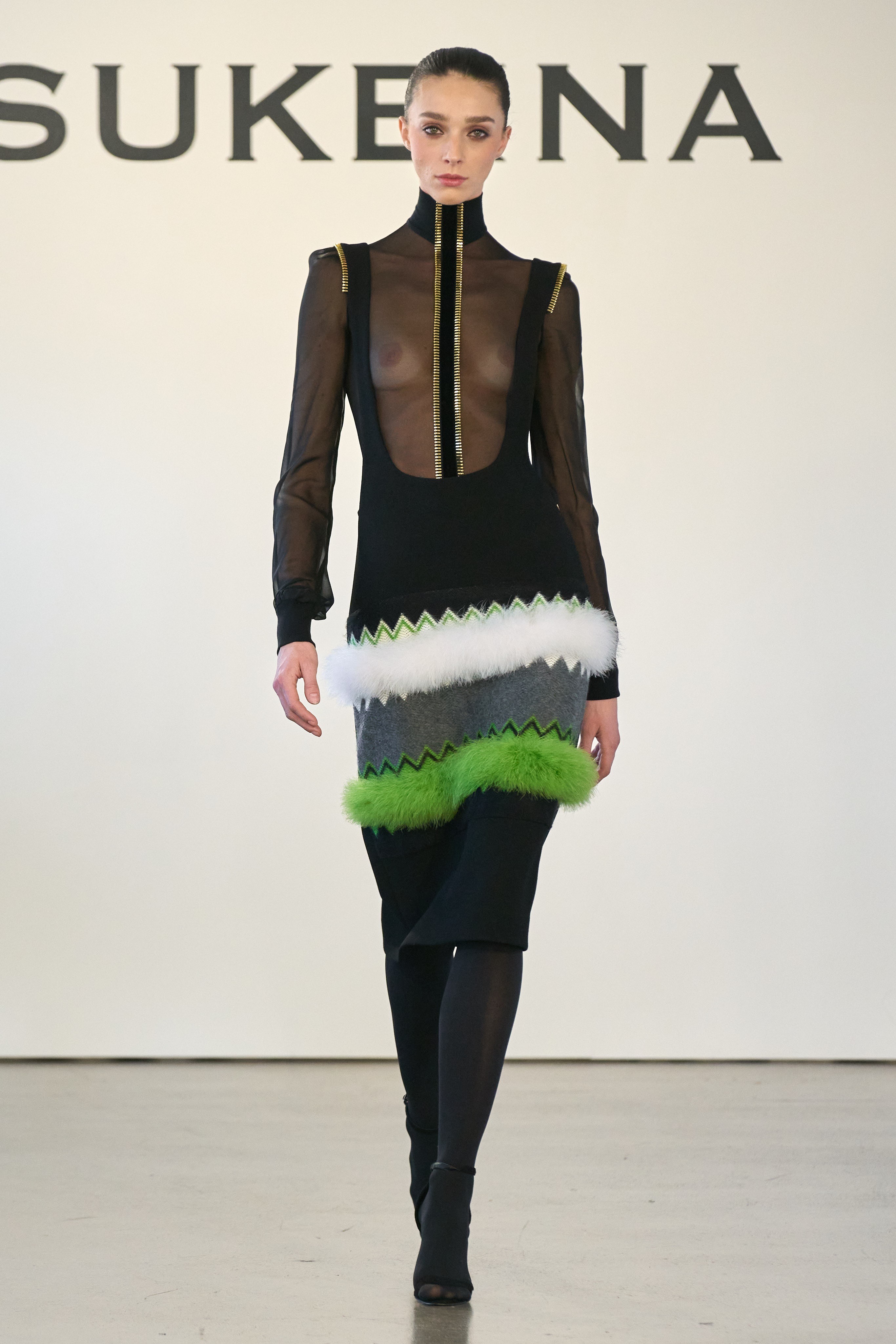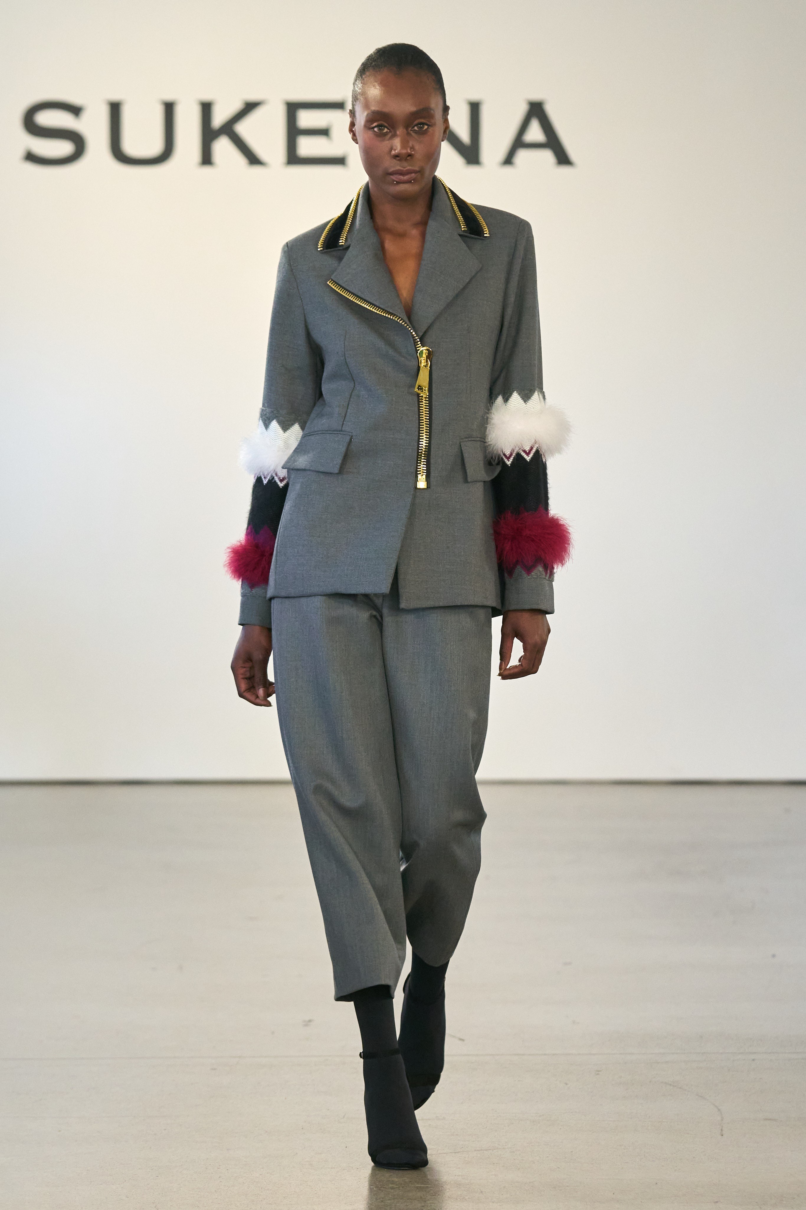 Coco Rocha closed the show in a black and fuchsia gown that didn’t spare any of the collection’s spotlighted details. Black fur lines the top of the confectionary skirt, and the sleeves are covered in sequin, while the crisp white collar speaks to the tailoring. Sukeina’s known in fashion as one of its “best kept secrets.” Here’s hoping this collection gets everybody talking out loud.