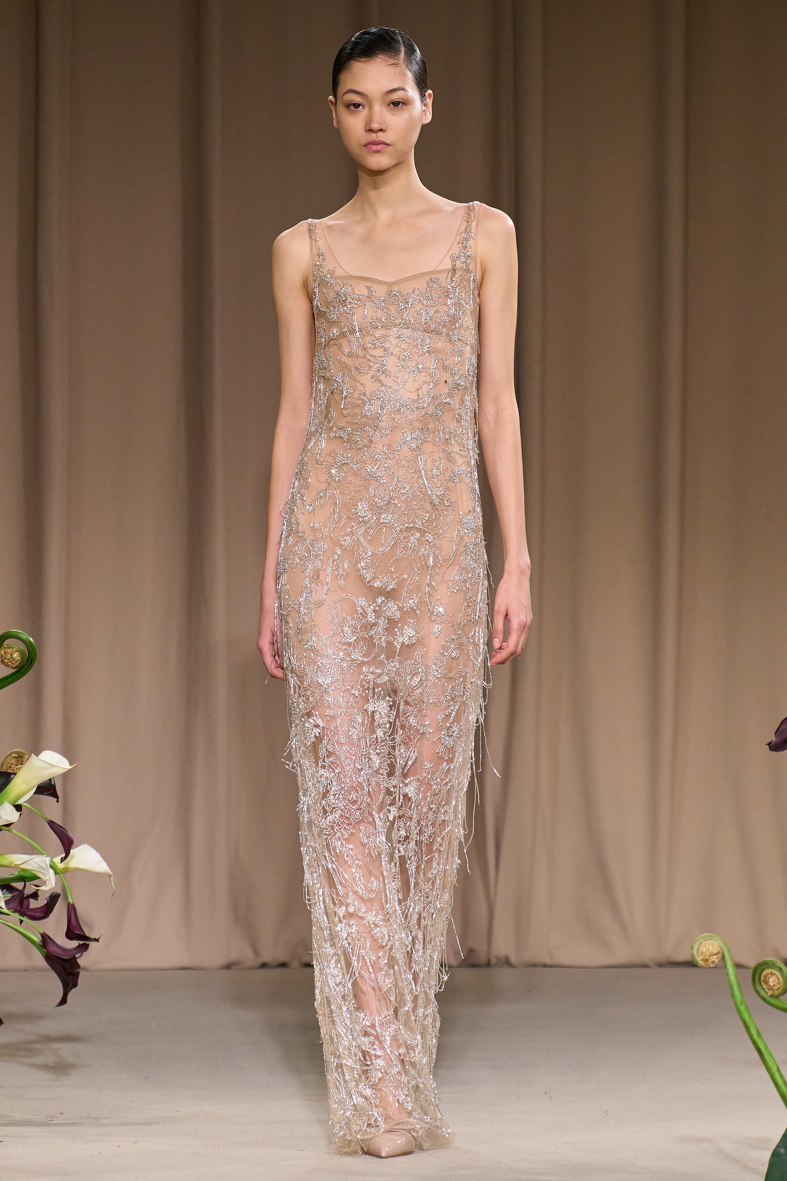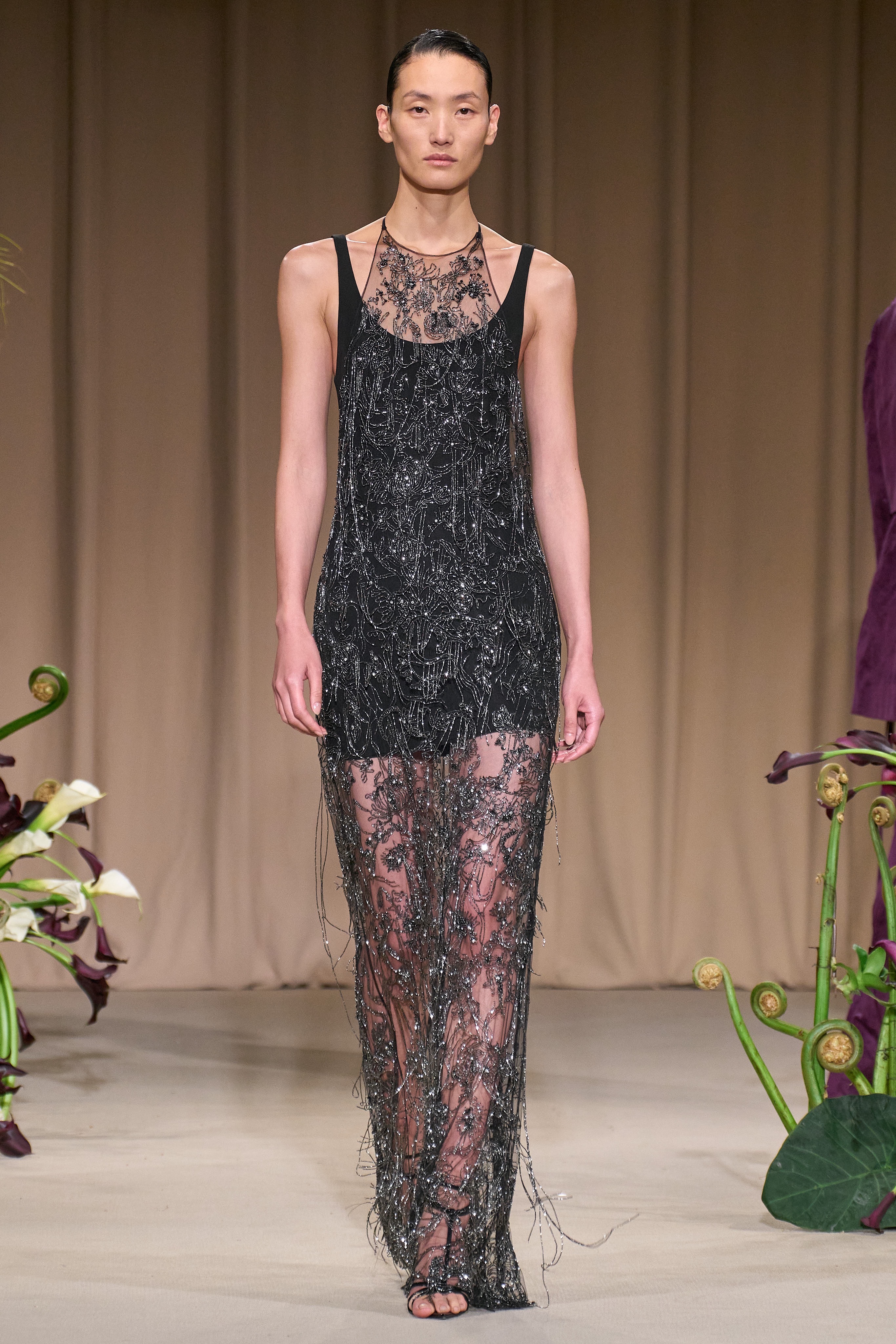 His collection, which was inspired by 20th century photographer Karl Bloosfeldt and his botanical photography, influenced Wu to take a cinematic direction. You see hints of Bloosfeldt in a variety of Wu’s pieces including feminine stringy silk dresses, blouses and skirts that have the essentials of what makes a garden, loose flowers, and serpents.